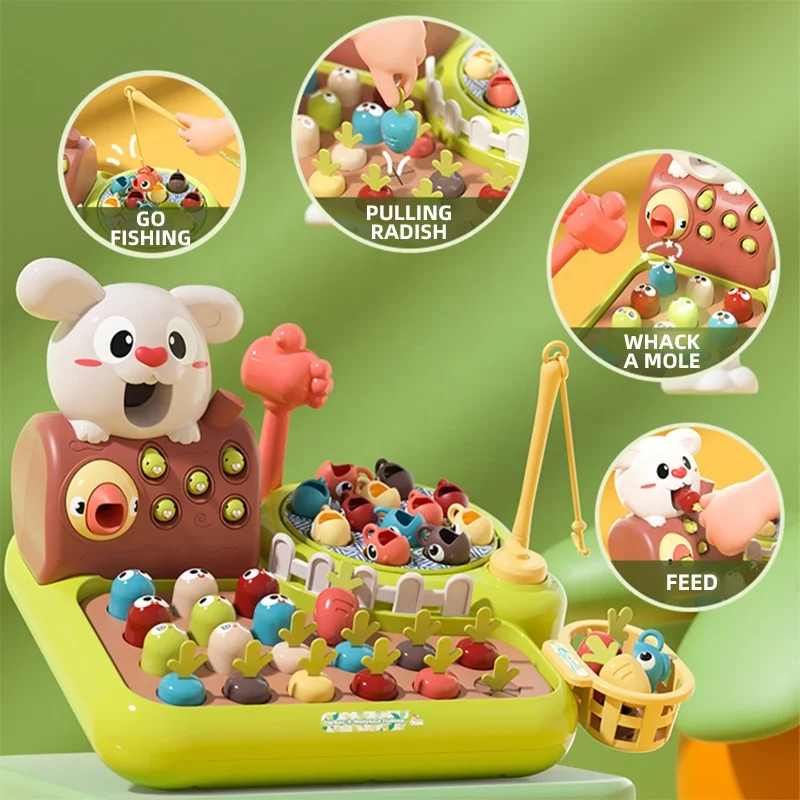 Be the first to review “4 In 1 Funny Farm Baby Toy Fine Motor Board Game Hammer Whack-a-Mole Montessori Educational Magnetic Fishing Toys Set”