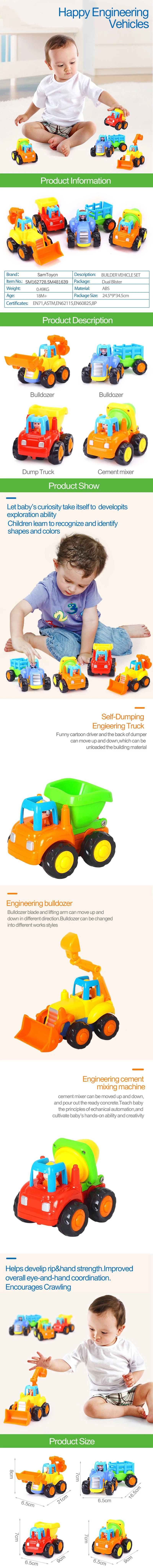 Samtoy 4 styles Early Education Inertia Engineering Vehicles Mini Truck Toy Kids Car Friction Toy Vehicle for Children Gifts
