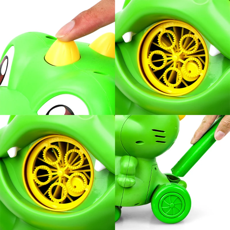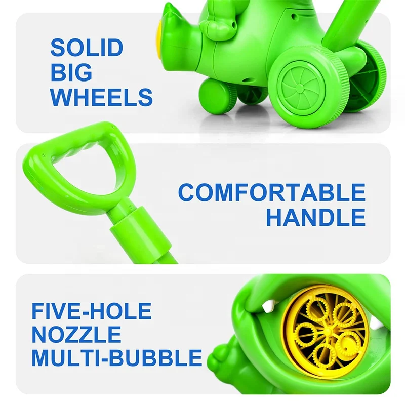 | Product Description | Samtoy 5 Holes Dinosaur Hand Carts Trolleys Outdoor Automatic Blower Maker Toys kids Bubbles Machine With 150ml Bubble Water |