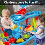 Samtoy 63CM Summer Activity Play Game Beach Toys Outdoor 3-Tier sand and water table for Kids Outside Backyard