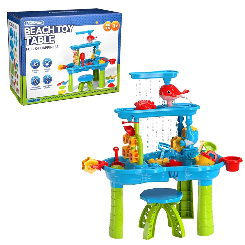 Samtoy 63CM Summer Activity Play Game Beach Toys Outdoor 3-Tier sand and water table for Kids Outside Backyard