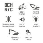 | Features | Forward and backward, turn left and right, light and sound effect, 680 degree turntable, arm digging |