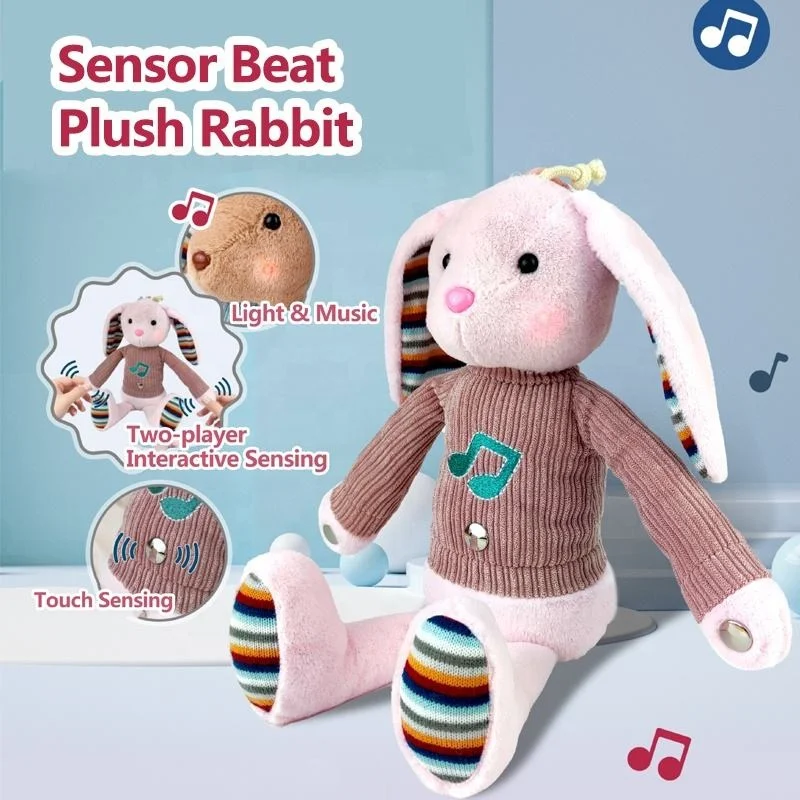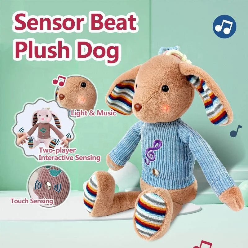 Samtoy Baby Soft Sleeping Stuffed Animal Music Touch Sensing Plush Doll Electronic Induction Toy with Induction and Beat Rhythm