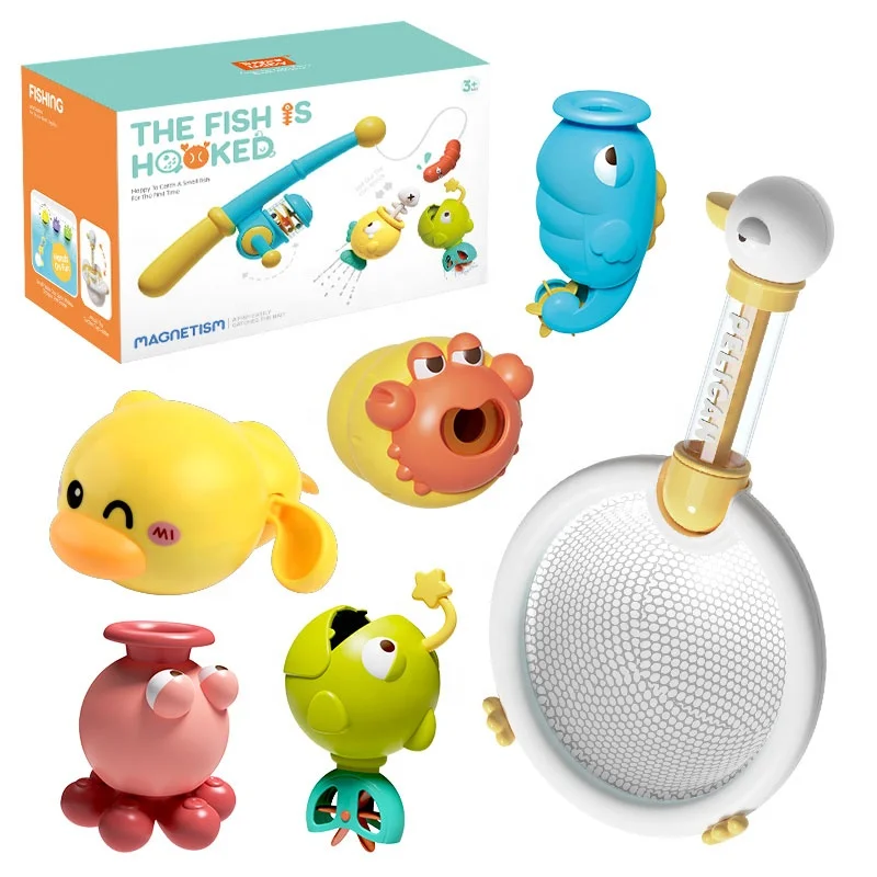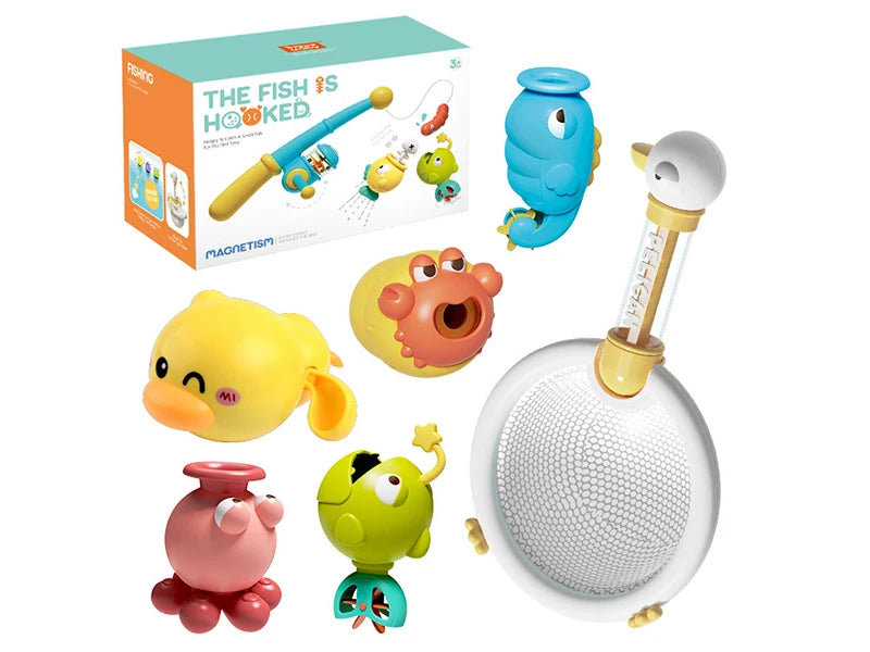 SKU: 9955783180593-samtoy-bath-tub-pool-water-sprinkler-floating-cute-duck-scoop-net-catch-fish-game-baby-bath-toys-set-for-toddlers Category: Tag: