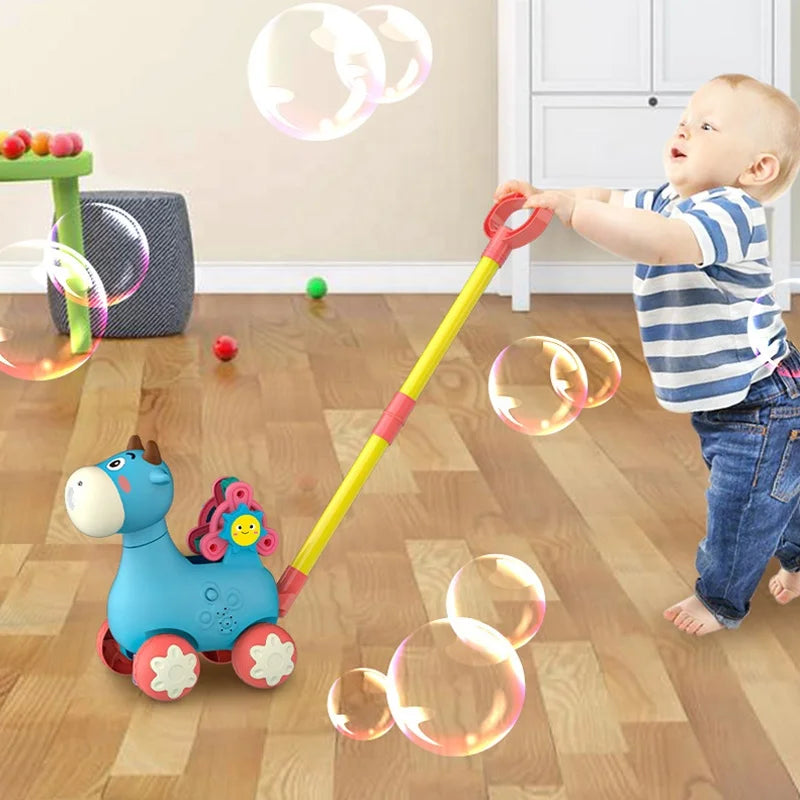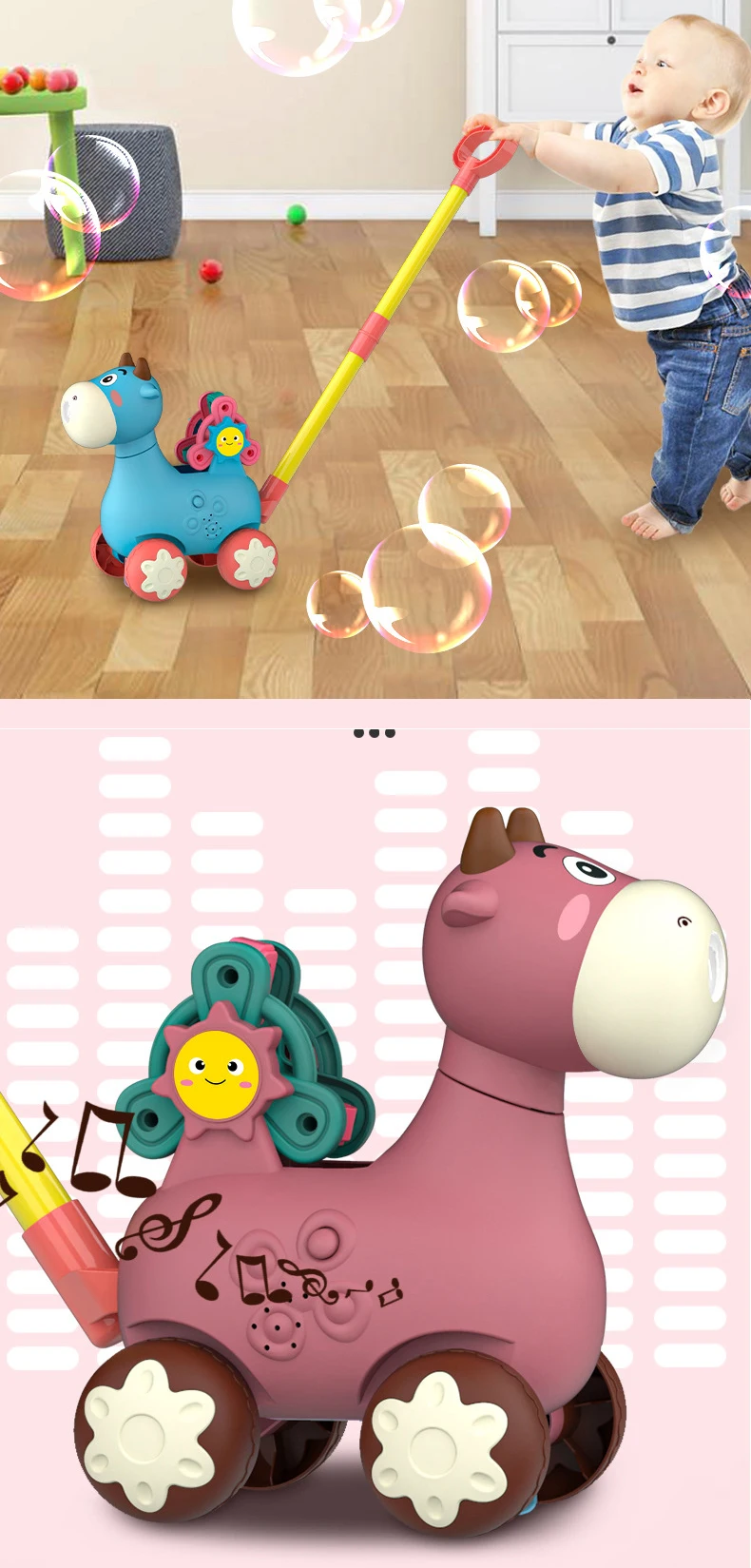 Samtoy Bubble Maker Electronic Animal Summer Outdoor Game Automatic Bubble Lawn Mower Blowing Toy Hand Push Bubble Machine