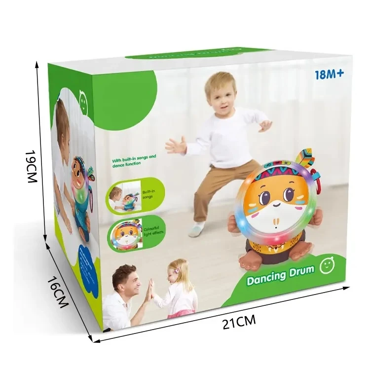 Cartoon Electric Musical Instruments Can Recordable Baby Slap Dancing Hand Drum Toy With Music Light