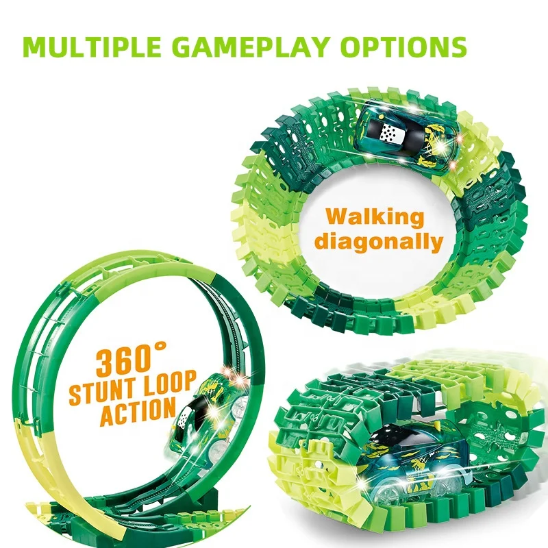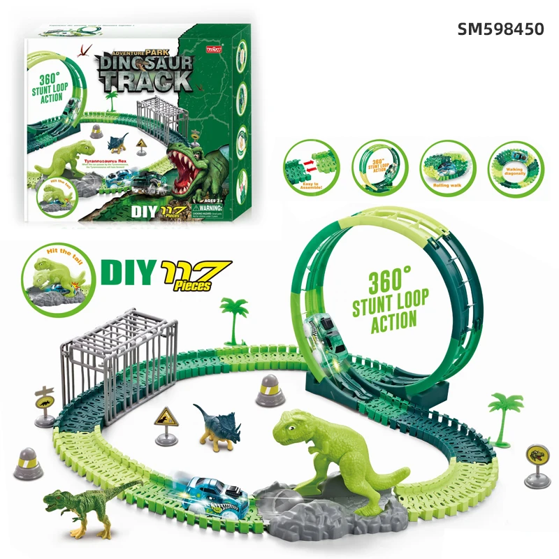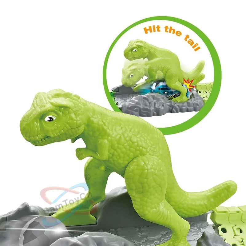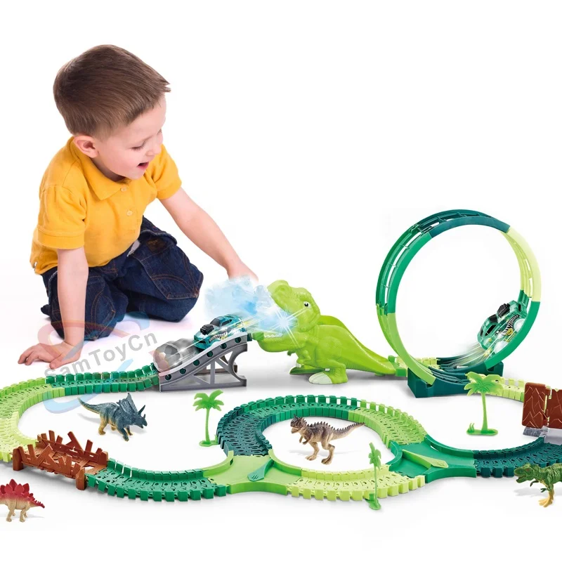 Samtoy Diy Dinosaur Indoor Adventure Park Kids Roller Coaster Toy 1:64 Slot Car Racing Track Electric Car Track With Lights