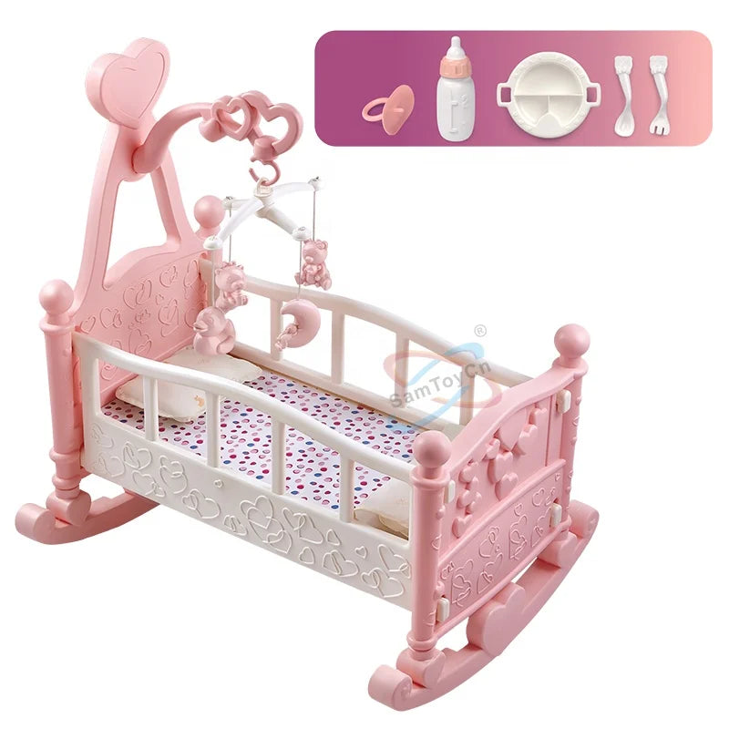 | Description | Samtoy Eco-Friendly Materials Simulation Pretend Play Doll Furniture Baby Crib Toy Doll Accessories Set for Best Gift |