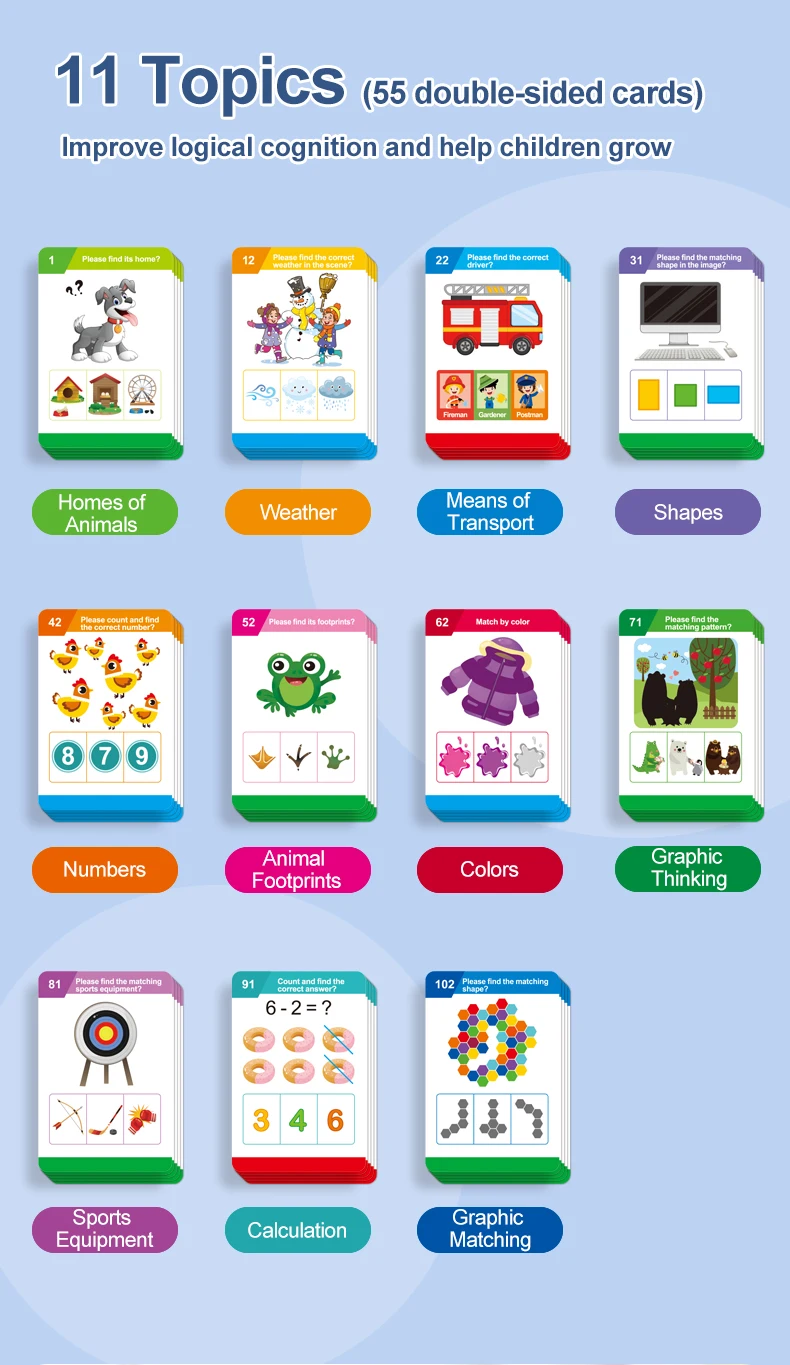 • Educational Benefits: Focuses on cognitive development with 55 double-sided interactive cards, promoting learning through play.