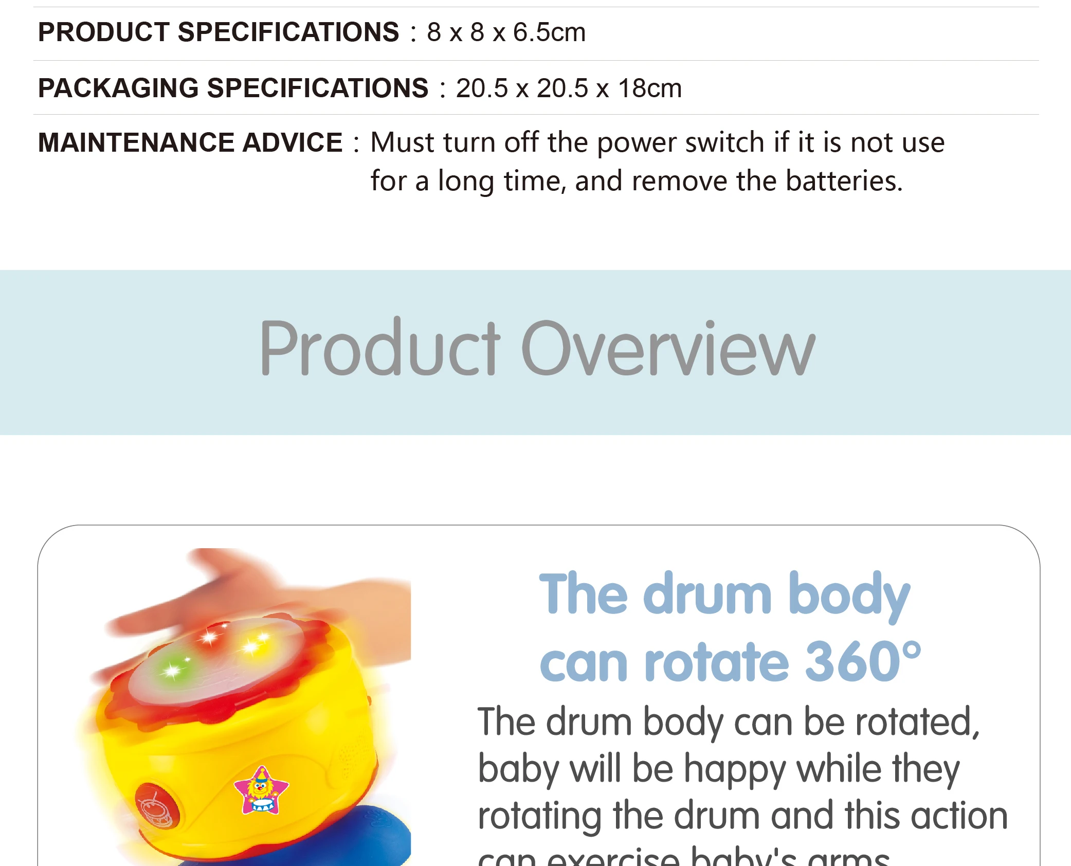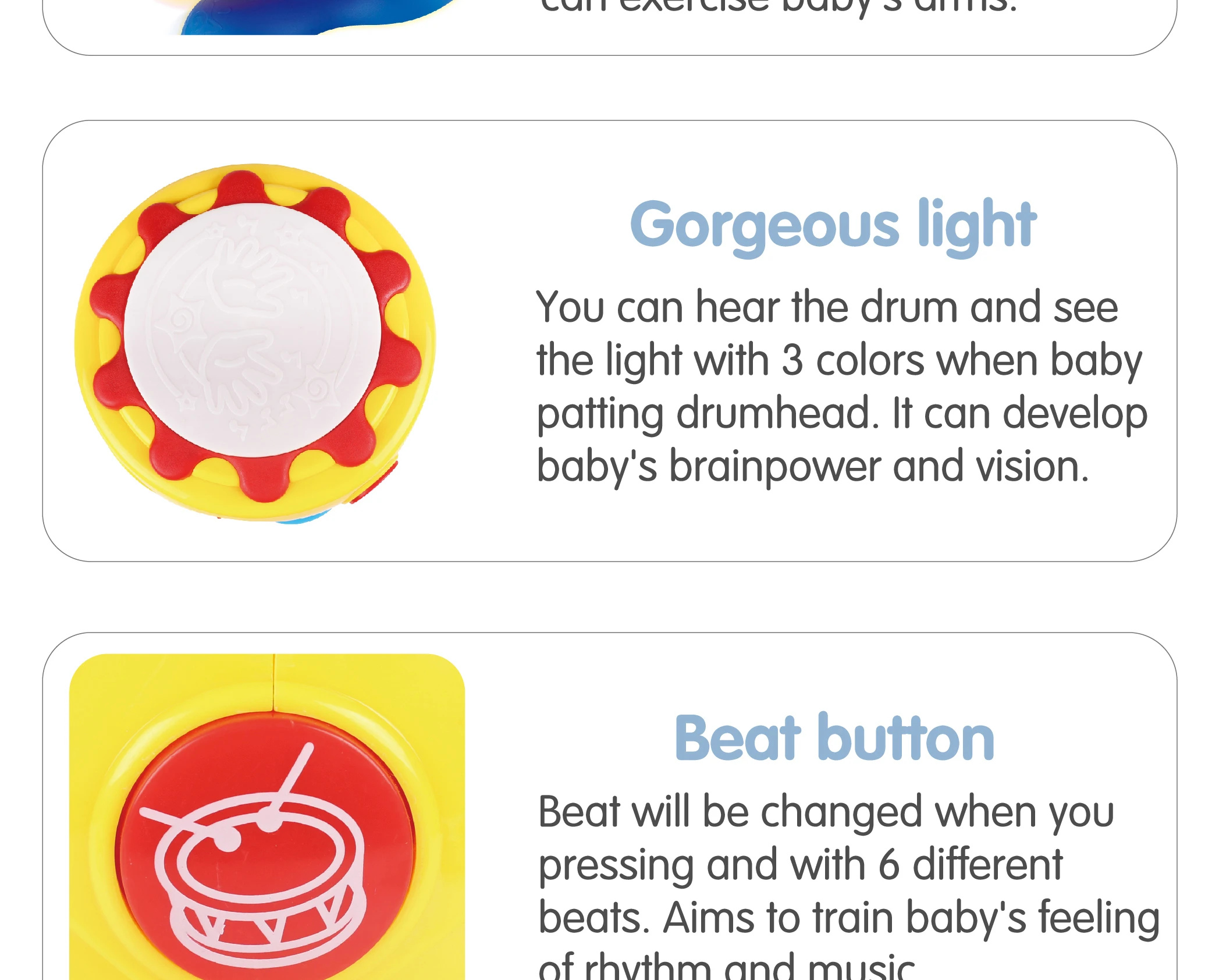 | Description | Samtoy Electronic Newborn Hand Drum Toys Plastic Early Education Lighting Baby Musical Toy for 18M+ Toddlers |
