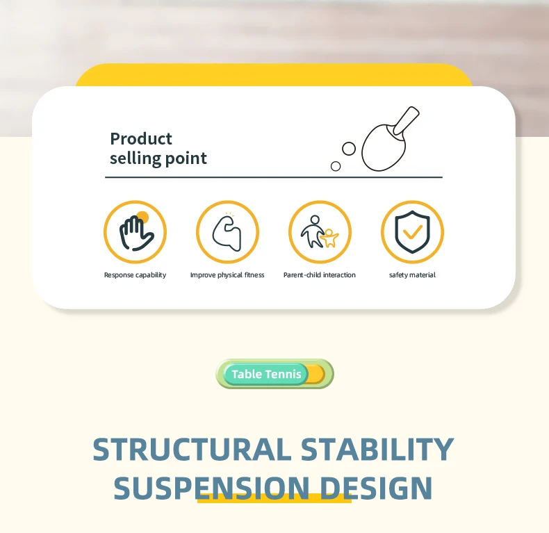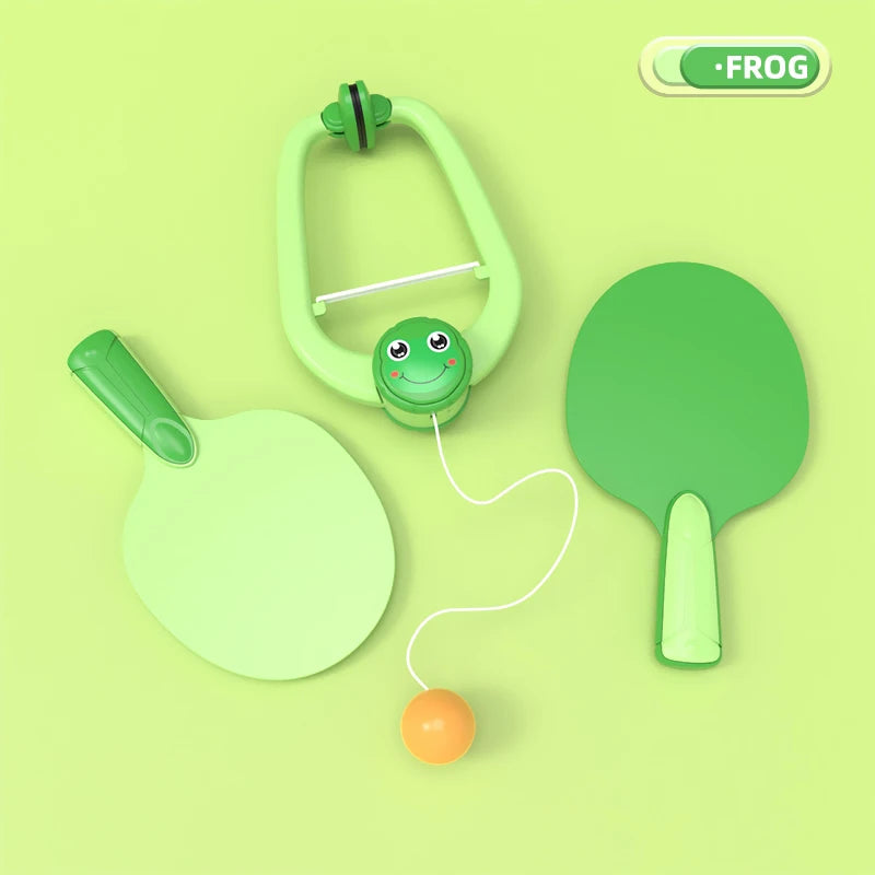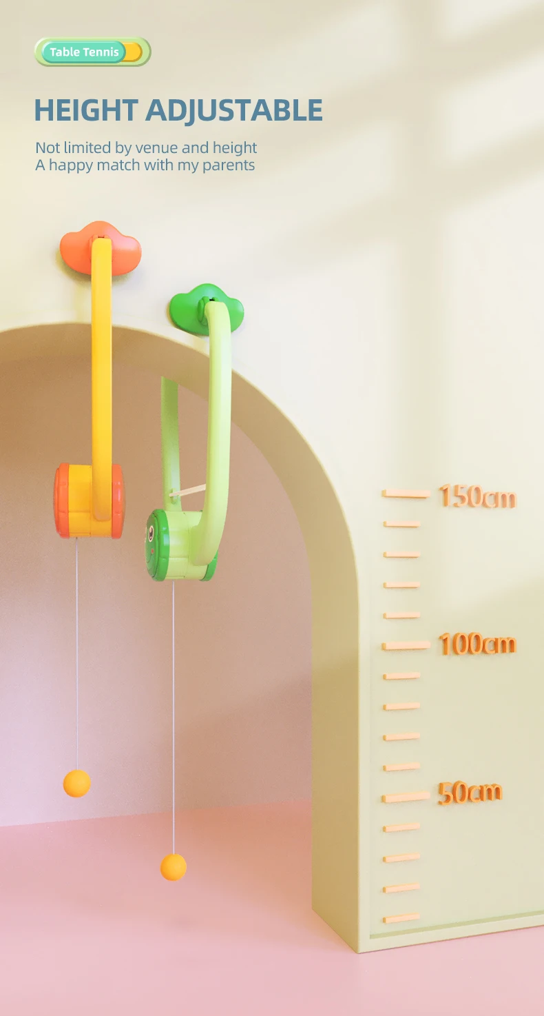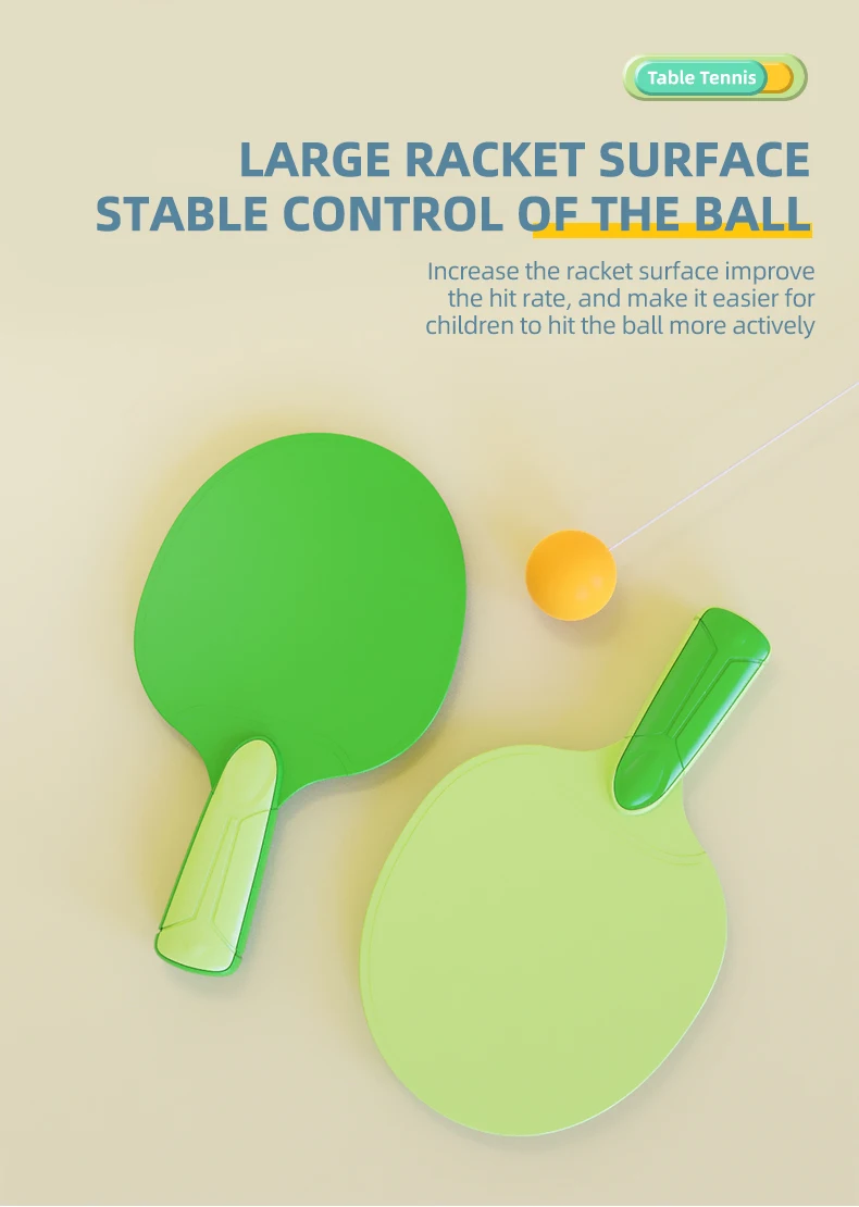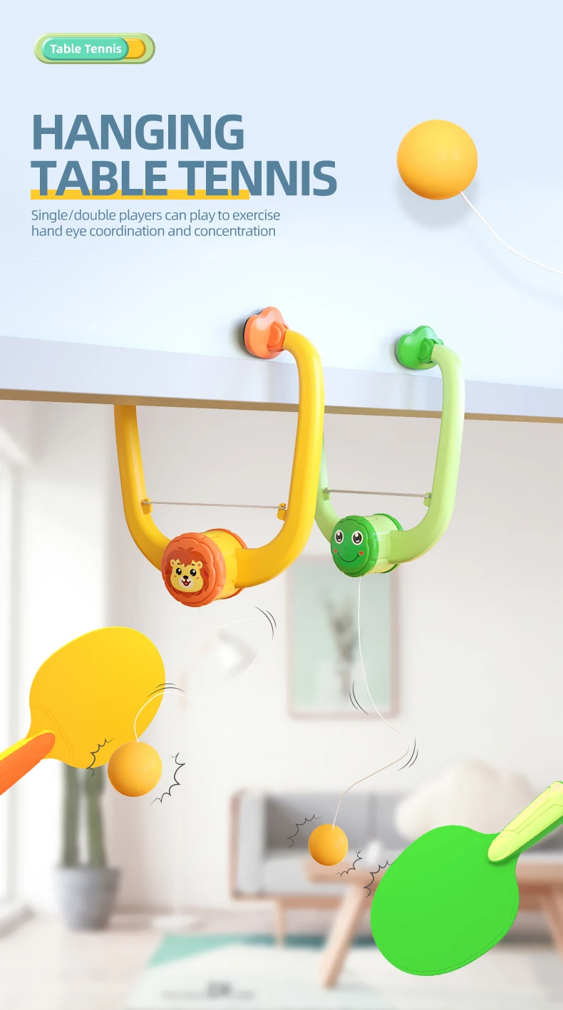 Kid Indoor Sport Toy Plastic Hanging Suspend Floating Pingpong Training Hanging Table Tennis Trainer with 2 Racket 3 Ball