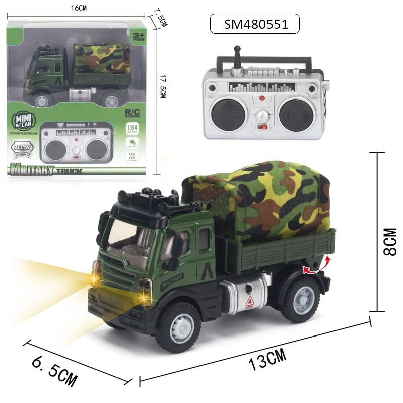 | Item | 1:64 2.4G Remote Control Alloy Military Transport Truck |