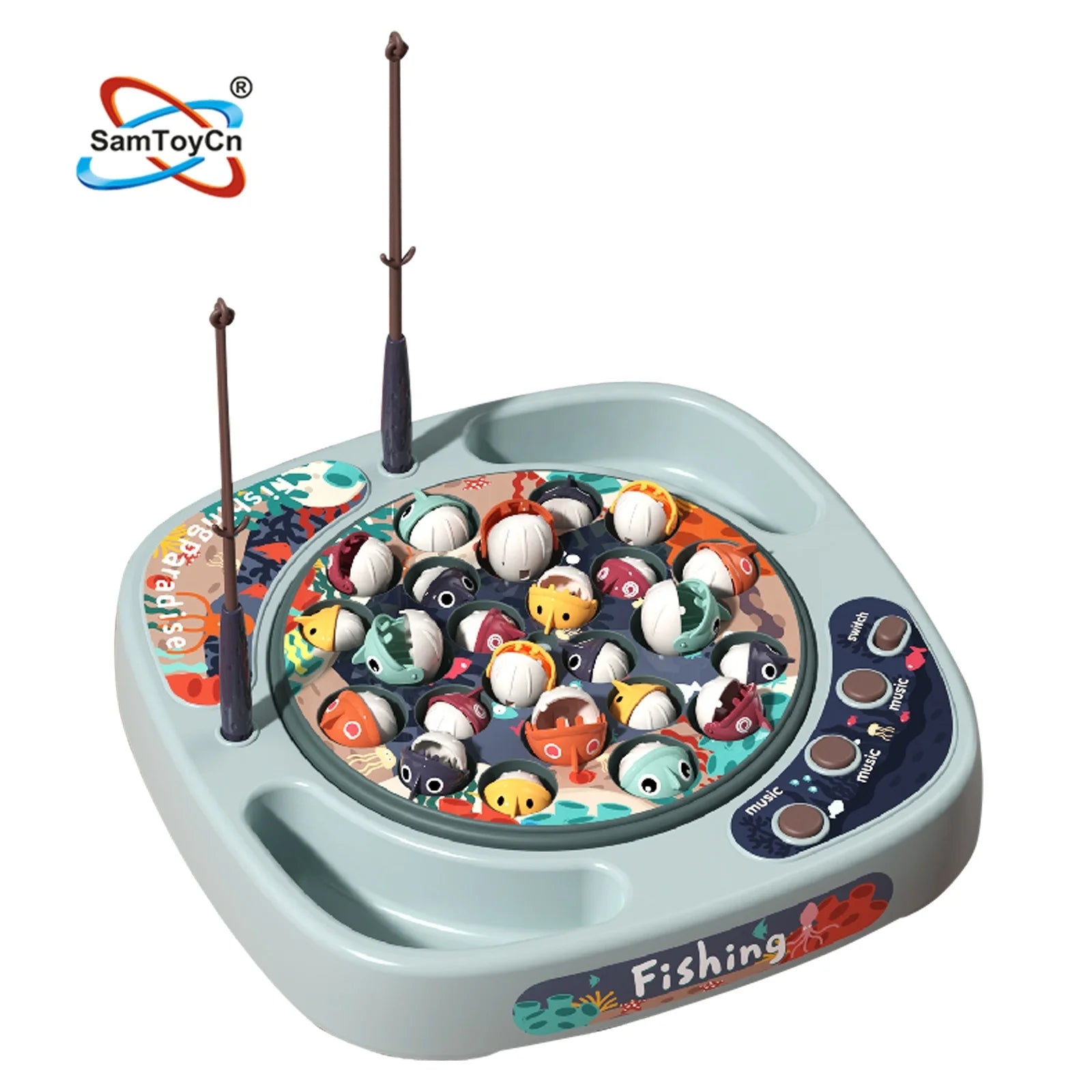 Detail of?Samtoy Kids 24PCS Puzzle Interactive Toys Plastic Electric Musical Rotating Board Magnetic Fishing Games Fishing Toys