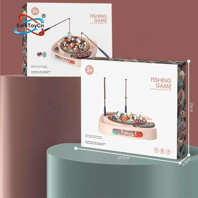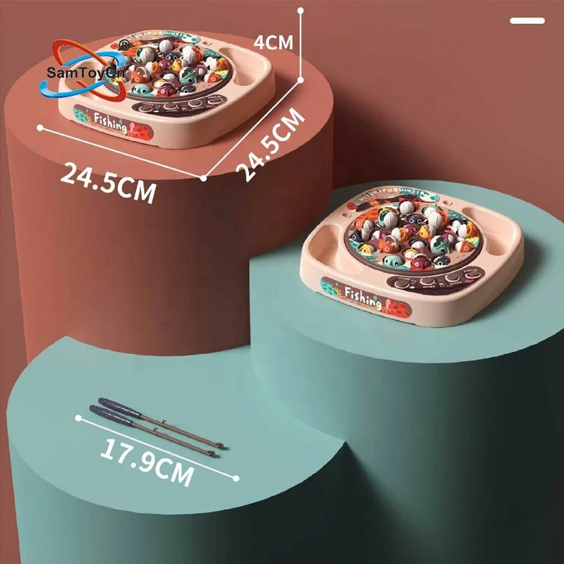 Kids 24PCS Puzzle Interactive Toys Plastic Electric Musical Rotating Board Magnetic Fishing Games Fishing Toys