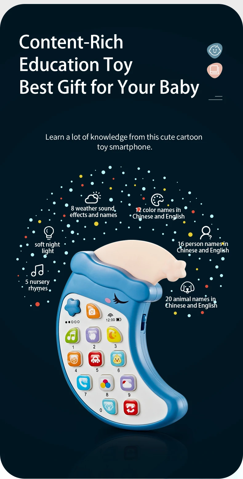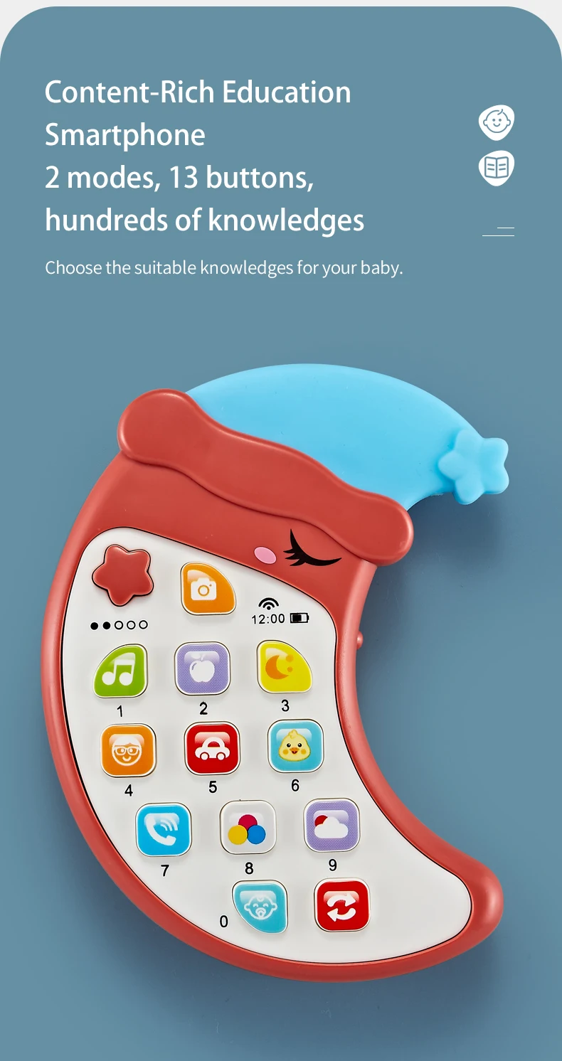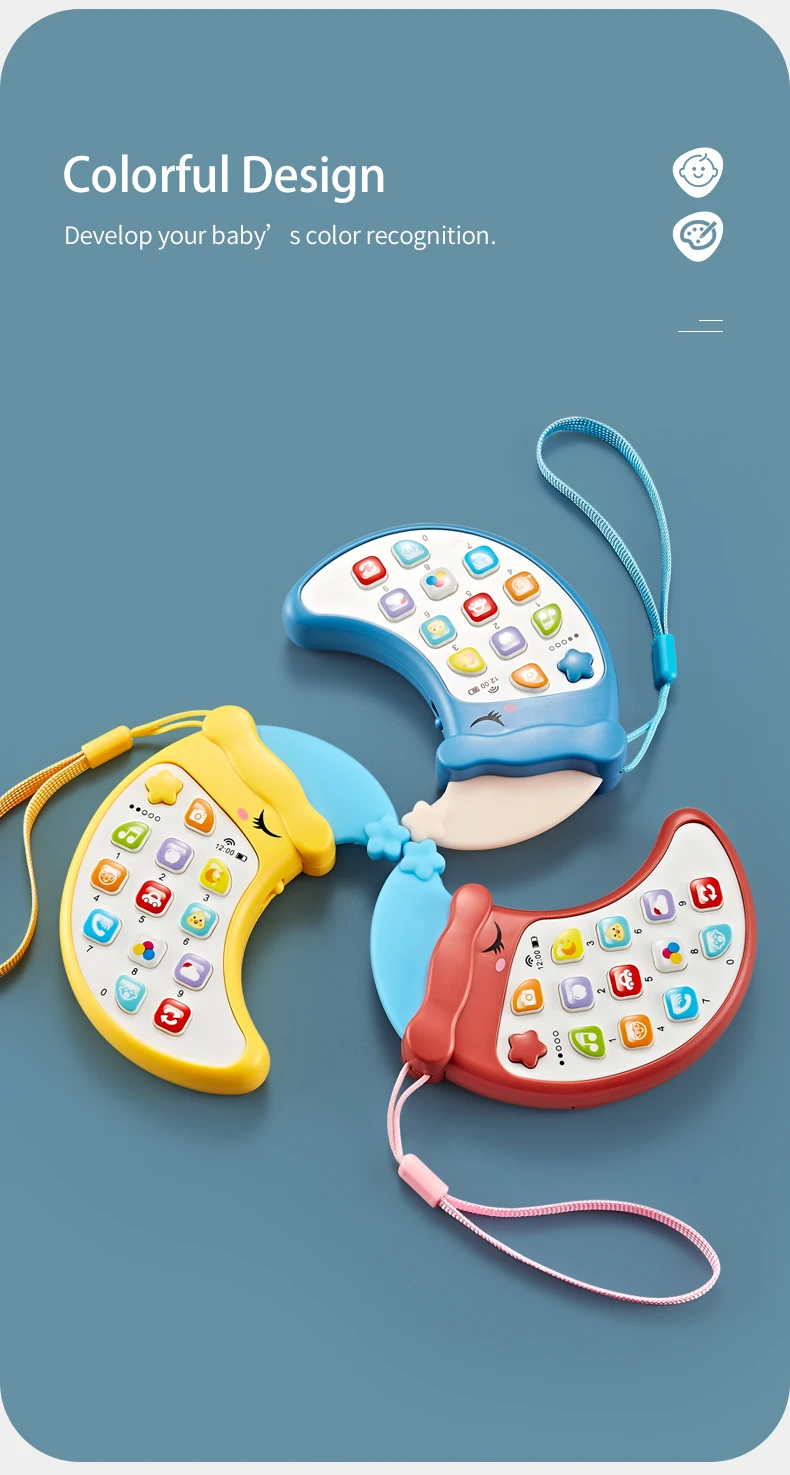 | Description | Samtoy Moon Shape Early Educational Mini Musical Silicone Cell Phone Baby Teether Learning Machine Toy Mobile Phone Toy for Kids |