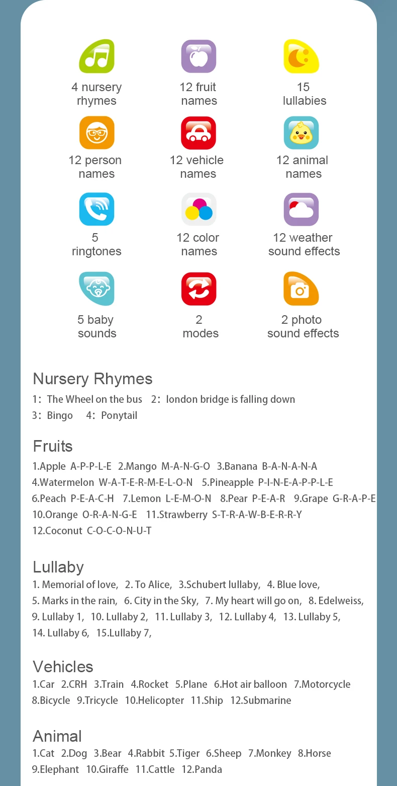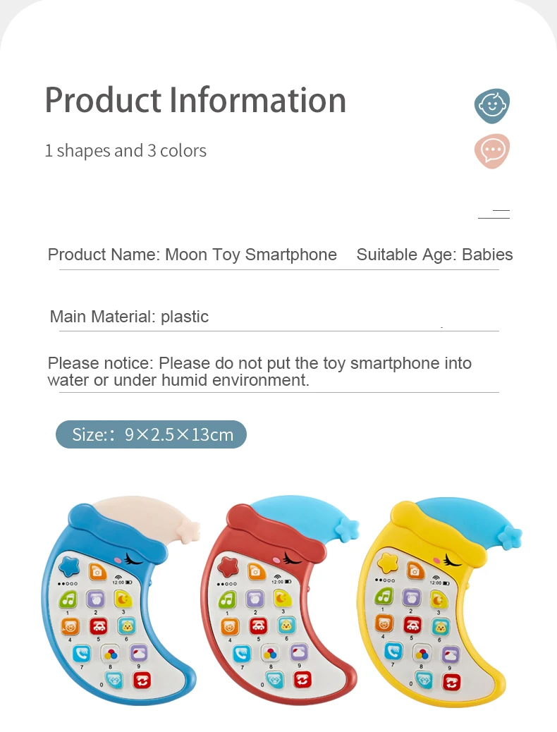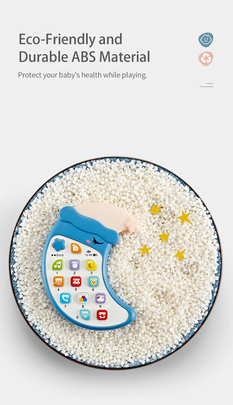 | Description | Samtoy Moon Shape Early Educational Mini Musical Silicone Cell Phone Baby Teether Learning Machine Toy Mobile Phone Toy for Kids |