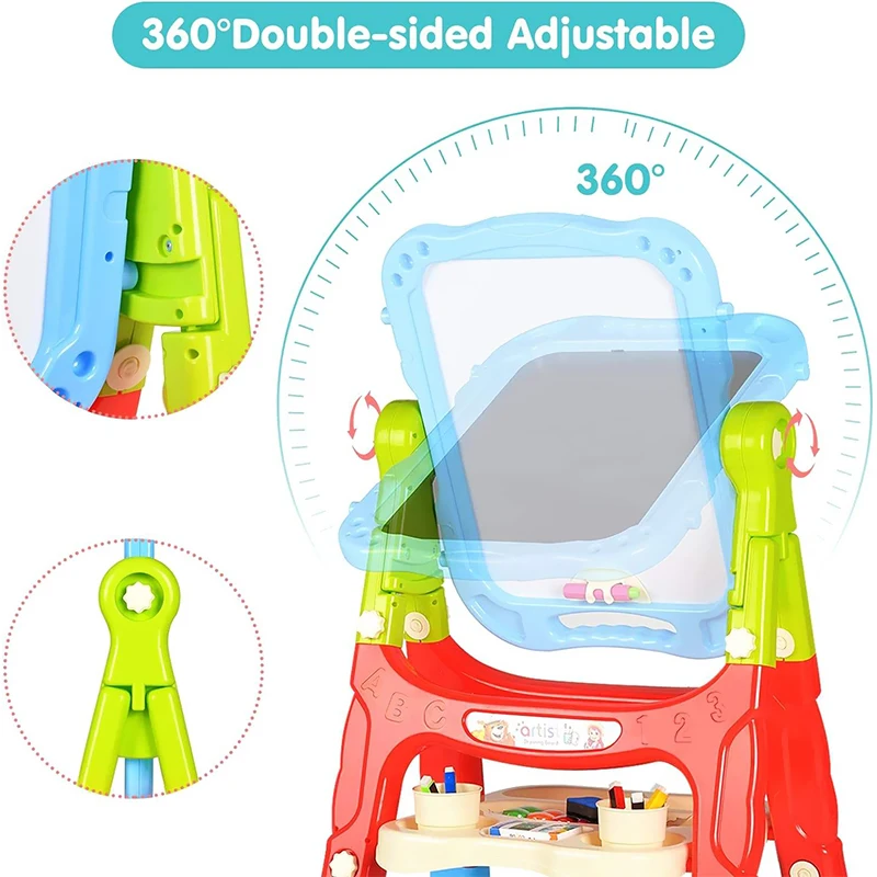 Samtoy Multi Color Pen 360 Rotate Double Side Adjusting Height Easel Set Painting Table DIY Painting Kids Magic Drawing Board