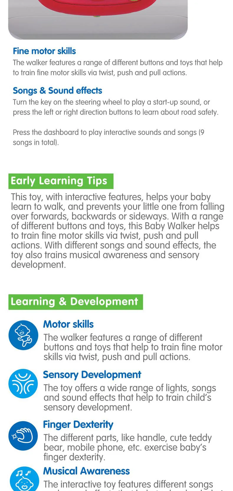 | Function | Light/music, 57cm wheel track to prevent tripping |
