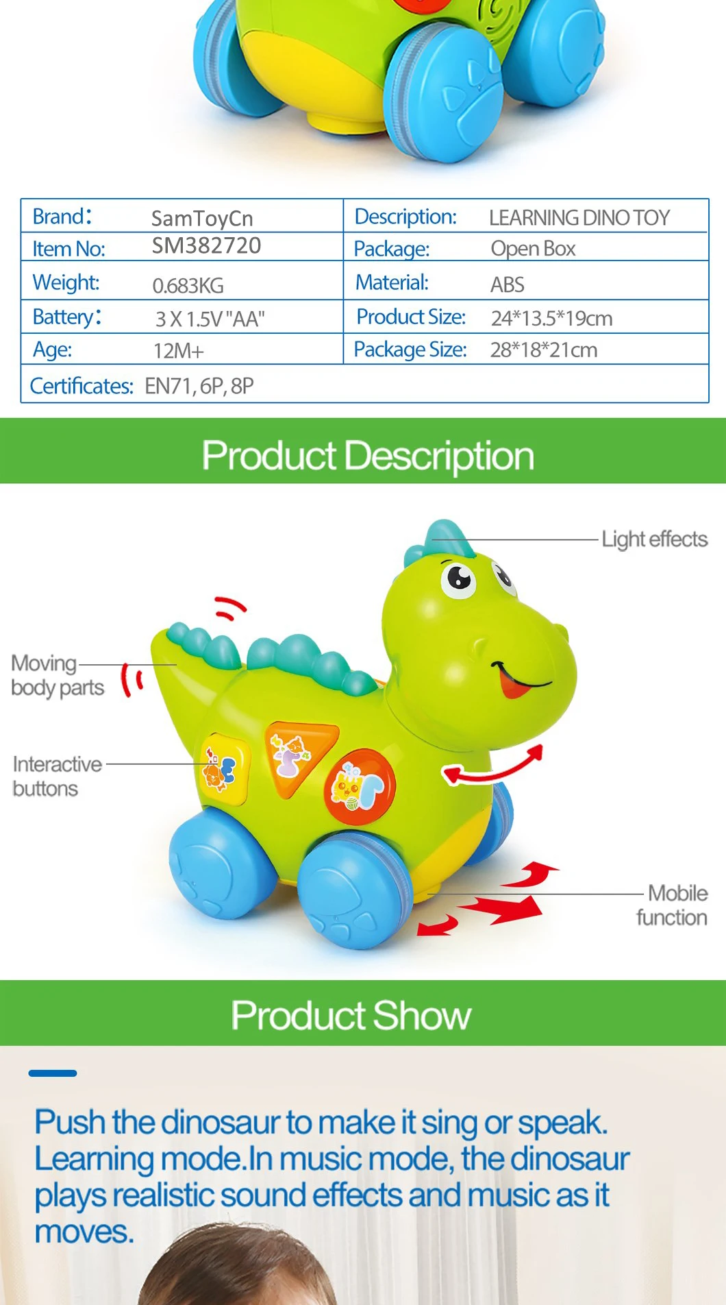 | Type | Other Educational Toys, Dinosaur(lighting/music/B/O/voice) |
