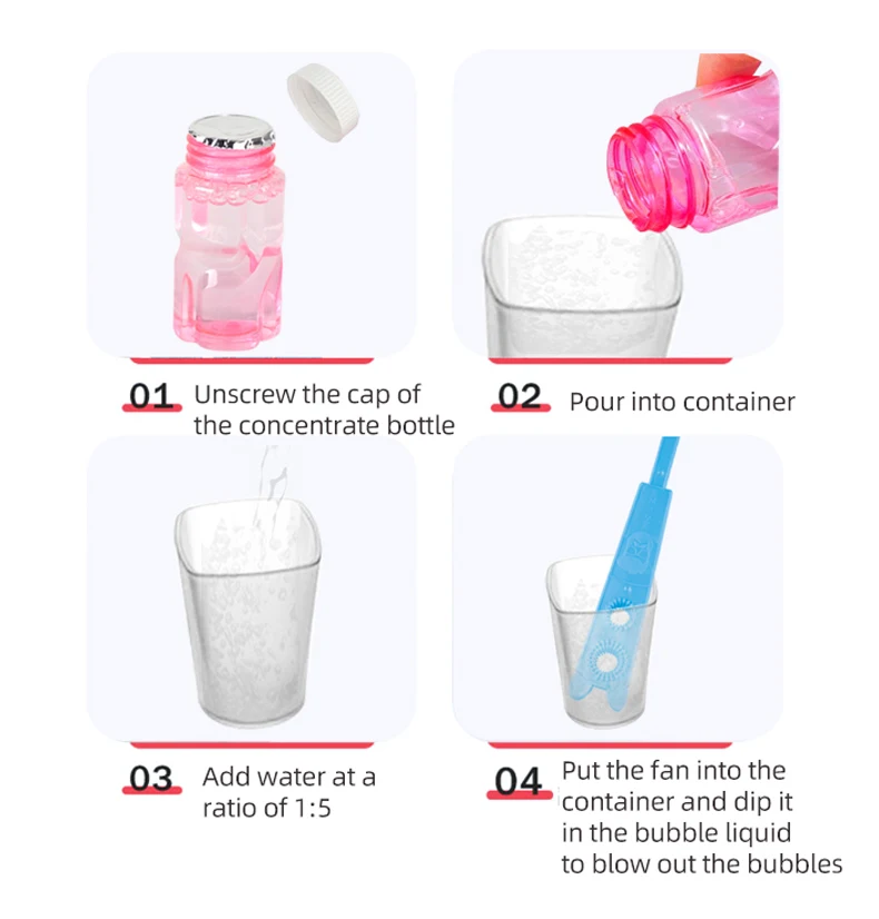 | Contain2 | Bubble water PVC cup * 1, concentrated bubble liquid * 2 |
