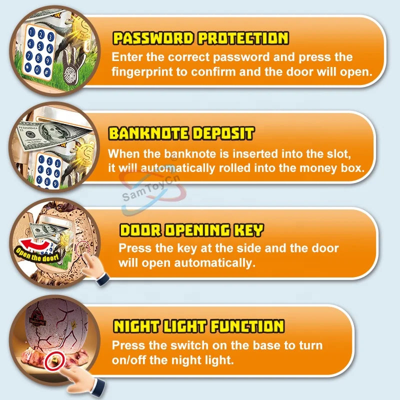 | Function | Fingerprint Password Recognition, Dinosaur Sound Effect, Night Light |
