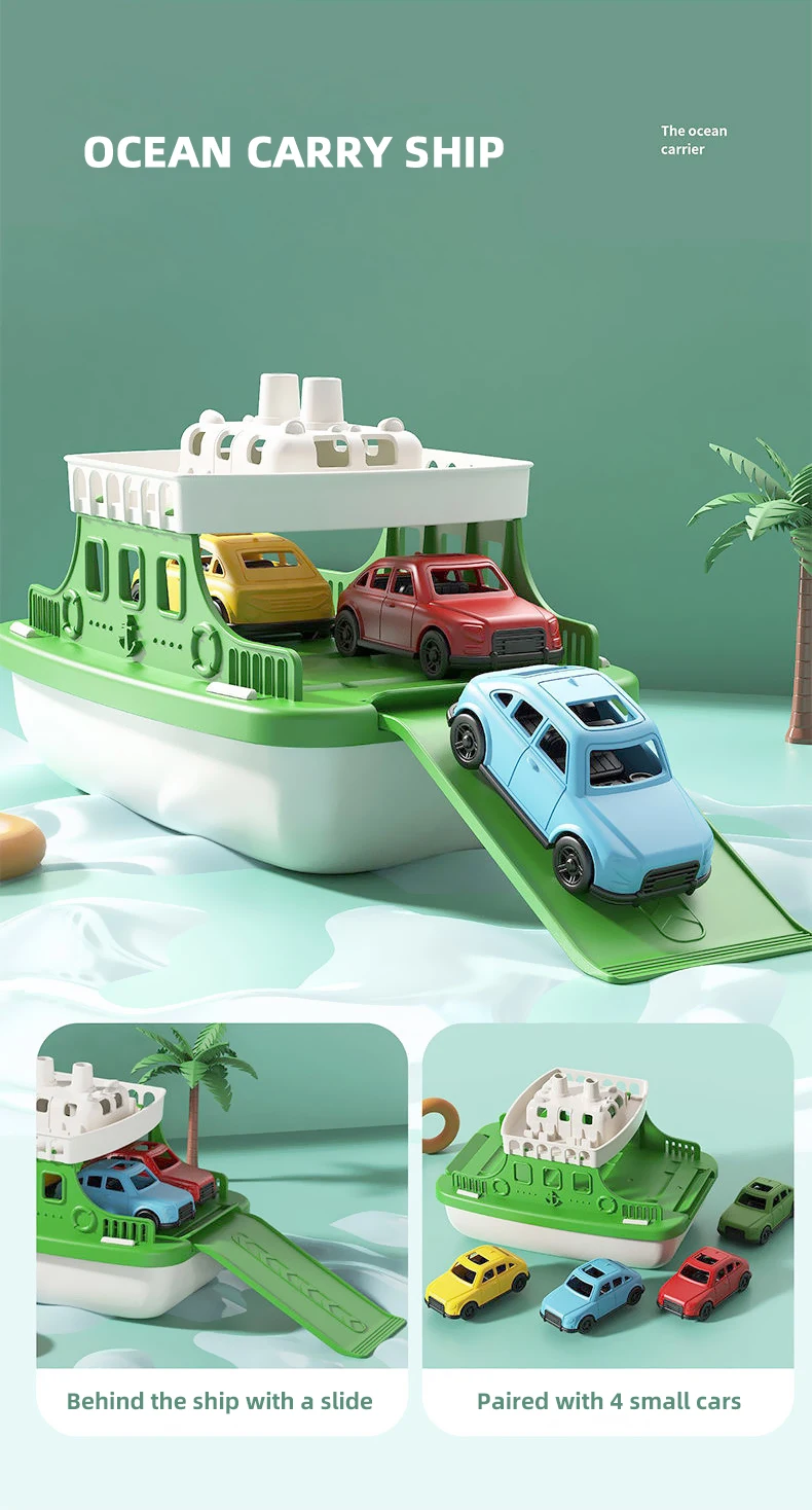 Plastic Sliding Car Model Set Transport Play Game Ocean Carry Ship Toy Ferry Boat Baby Kids toy Boat with Mini Cars