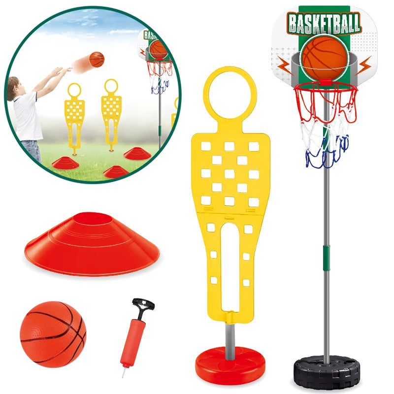 Samtoy Portable Adjustable Cheap Kids Outdoor Indoor Sport Dummy Obstacle Backboard Basketball Hoop Stand Toy with Ball for Sale