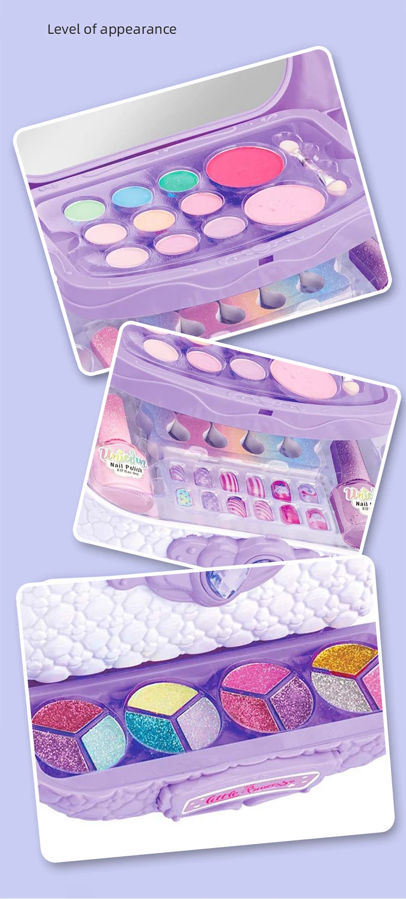 • Minimum Order Quantity: Only 1 carton required to place an order for this Princess Make Up Kit Girls Toys Play House Nail DIY Set.