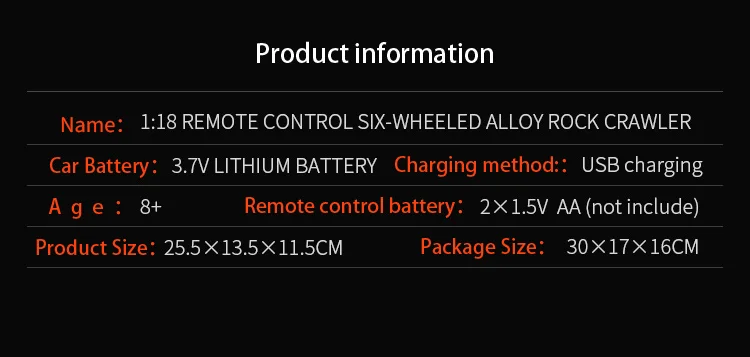 | Item name | 1:18 Remote Control Six-Wheeled Alloy Crawler | ||||||||||||||||||||||||||||||||||||||||||||||||||||||||||||||||||||||||||||||||||||||||||
