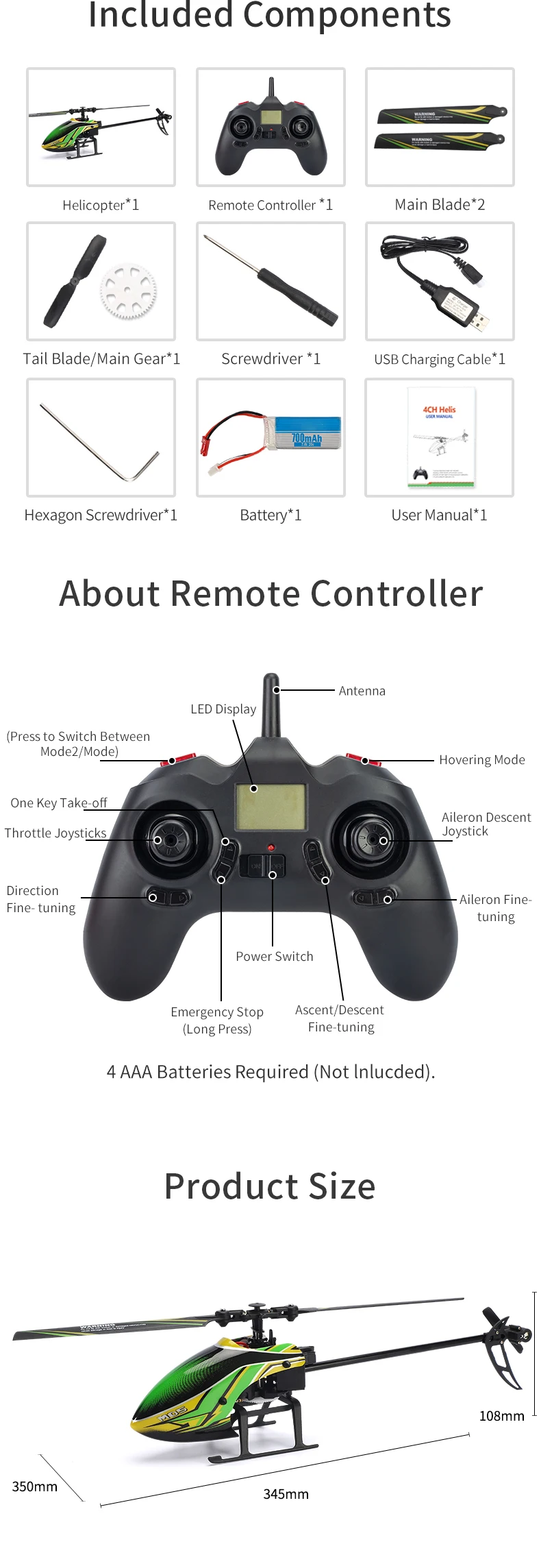 | Controller Battery | AAA battery*4, not included |