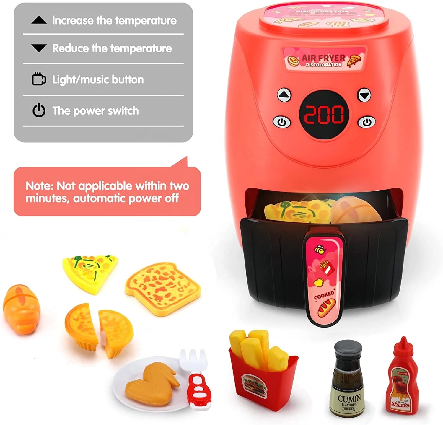 | Feature | Adjustable temperature, food will change color when cooked |