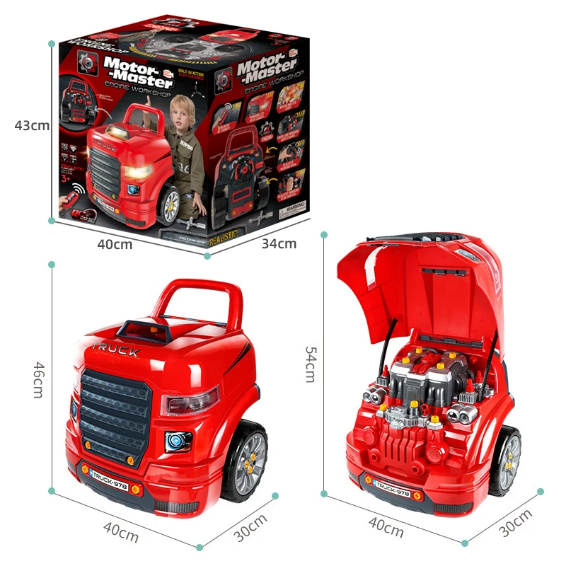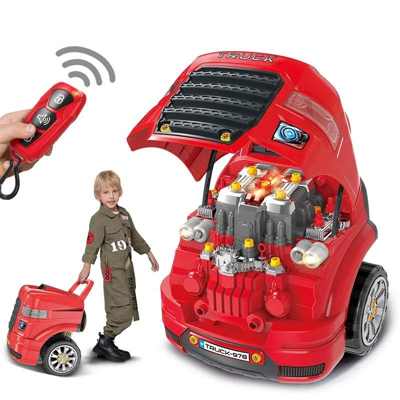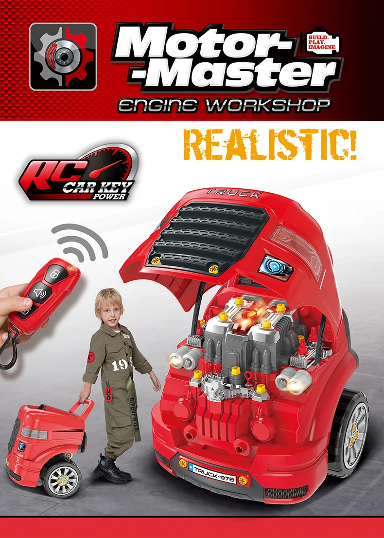 Samtoy Station Assembly Workshop Toy Repair Set Take Apart Large Mechanic Pretend Play Infrared Remote Control Toy Car Engine