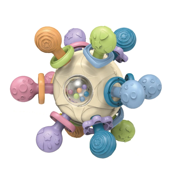 Toddler Sensory Coloful Learning Crawling Activity Spinning Ball Shaking Rattle Safe Soft Rubber Teether Toy Balls Baby