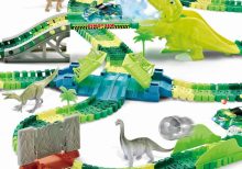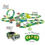 2.4G 6CH Spray Dinosaur Rotating Roller Coaster 360 Rotate Loop Flexible Track RC Rail Car