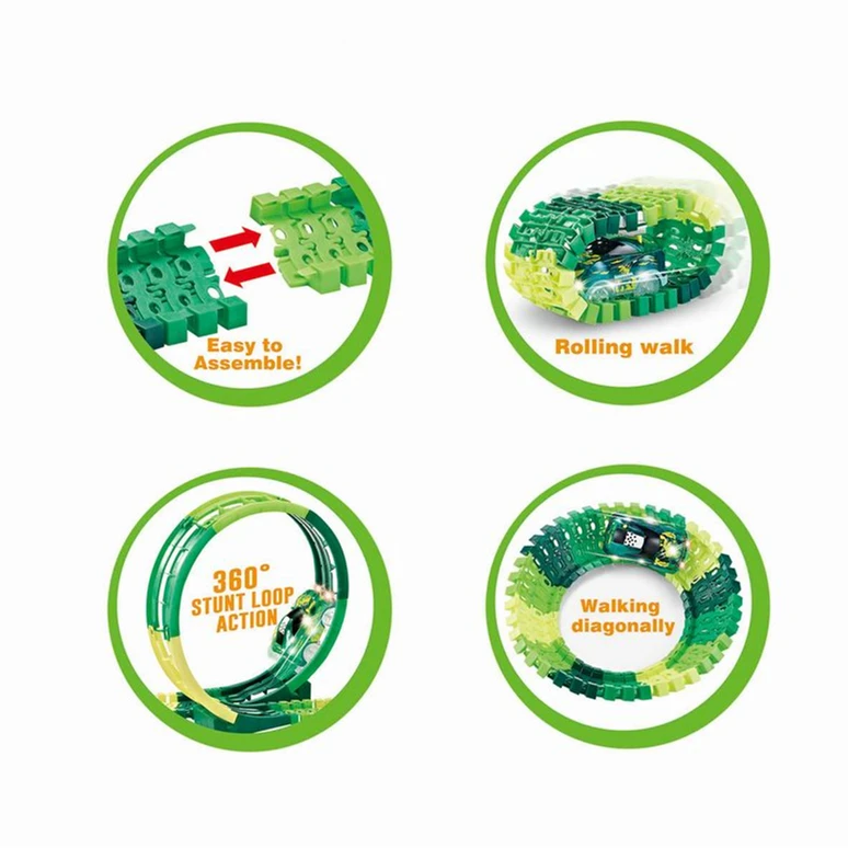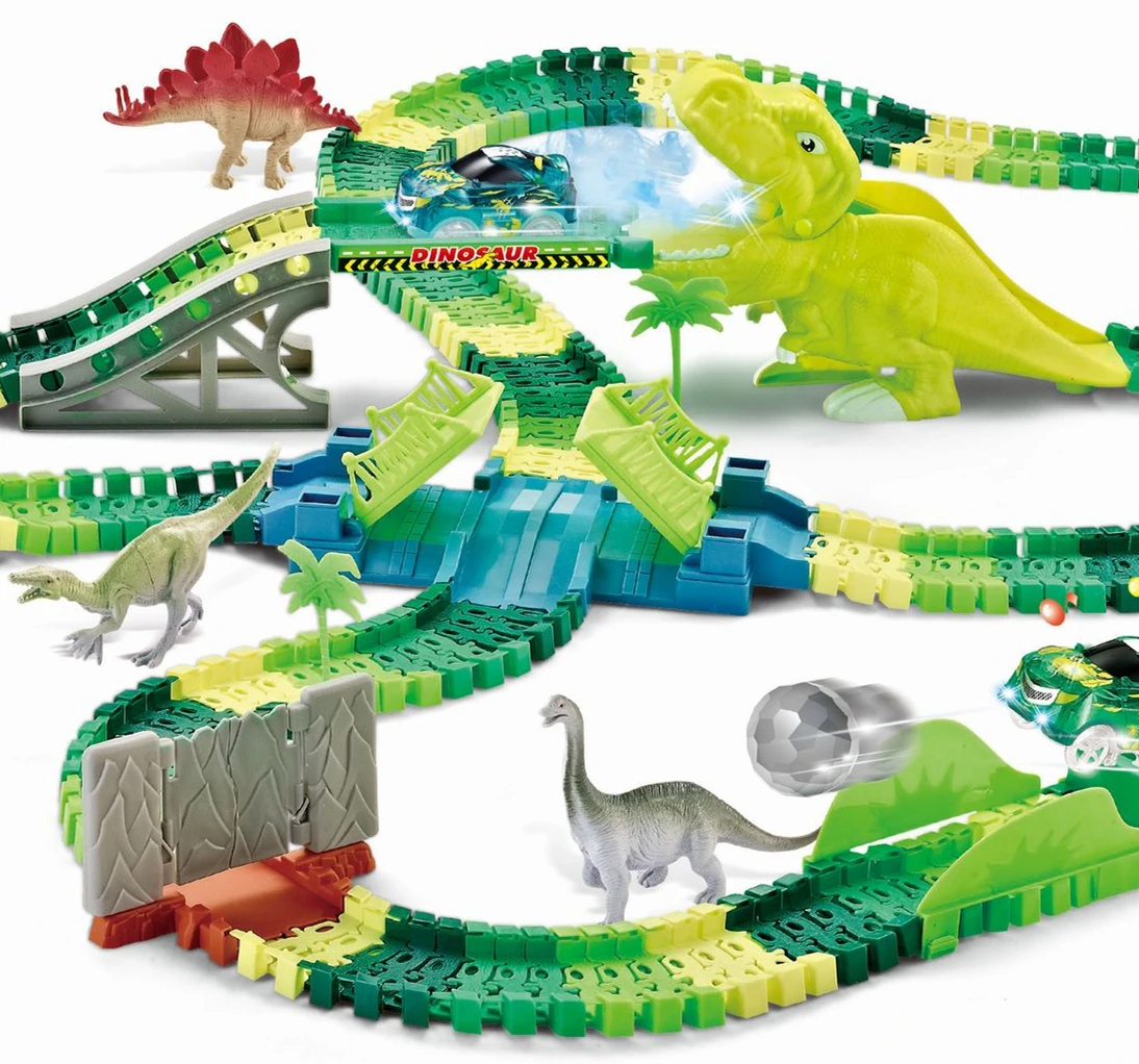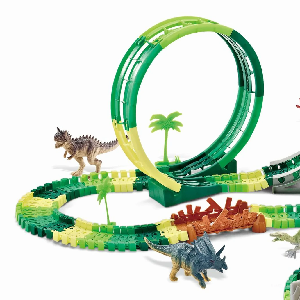 2.4G 6CH Spray Dinosaur Rotating Roller Coaster 360 Rotate Loop Flexible Track RC Rail Car