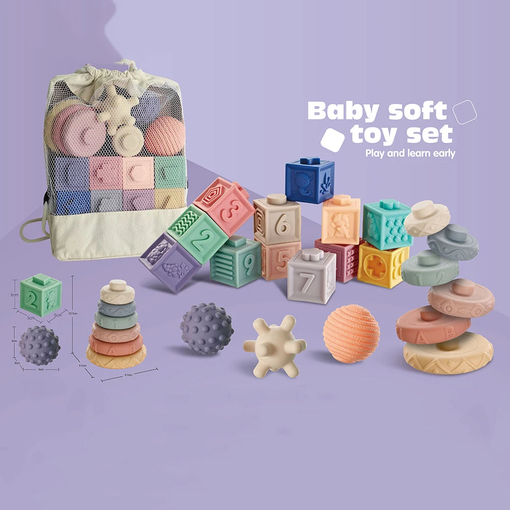 Detail of?Squeeze Cube Soft Baby Teething Bite Rubber Play Silicone Stacking Number Building Blocks for Baby