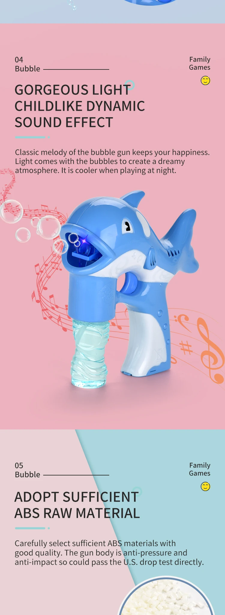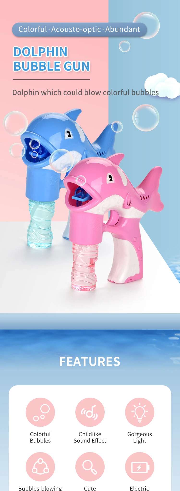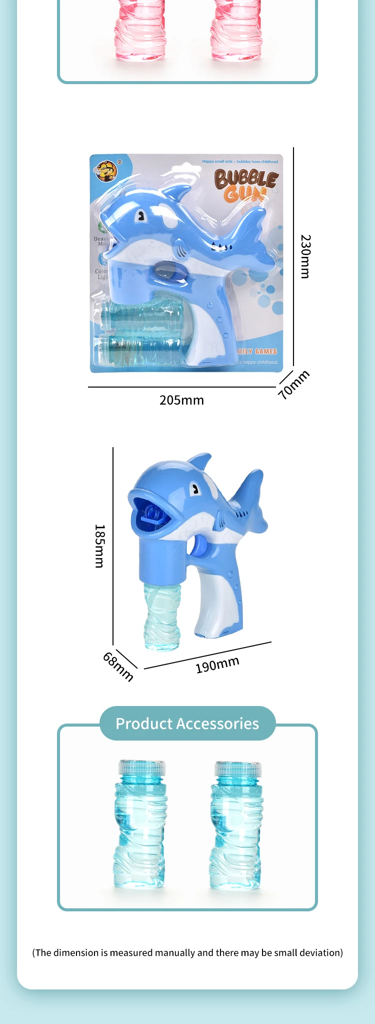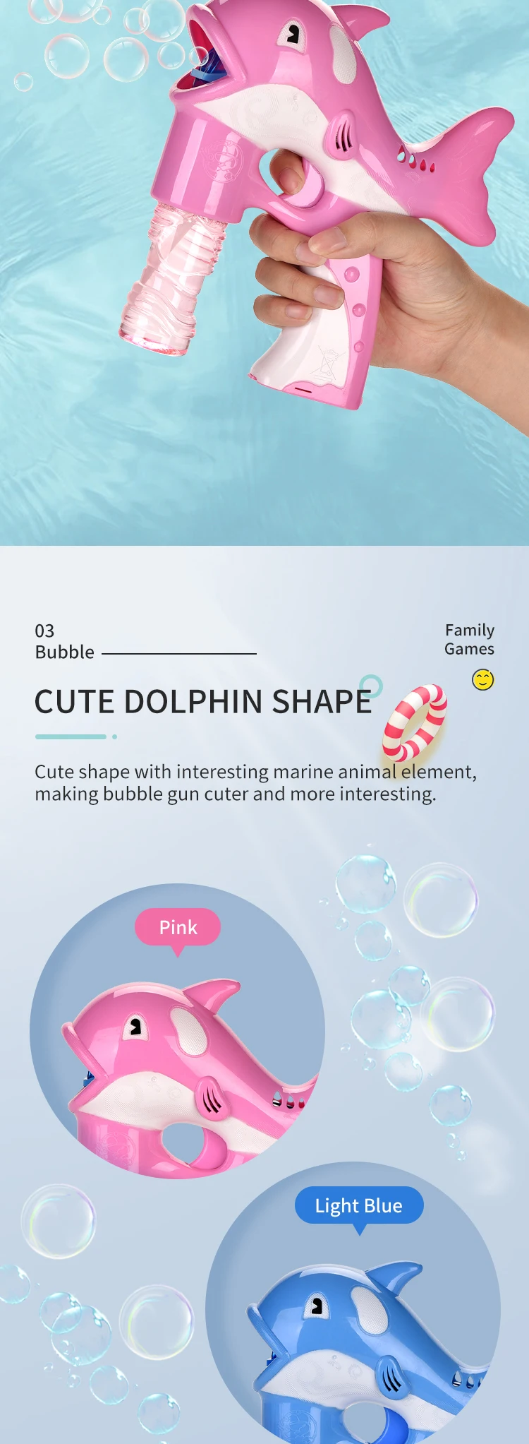 | Item | Solid Color Dolphin Bubble Gun With Light And Music |
