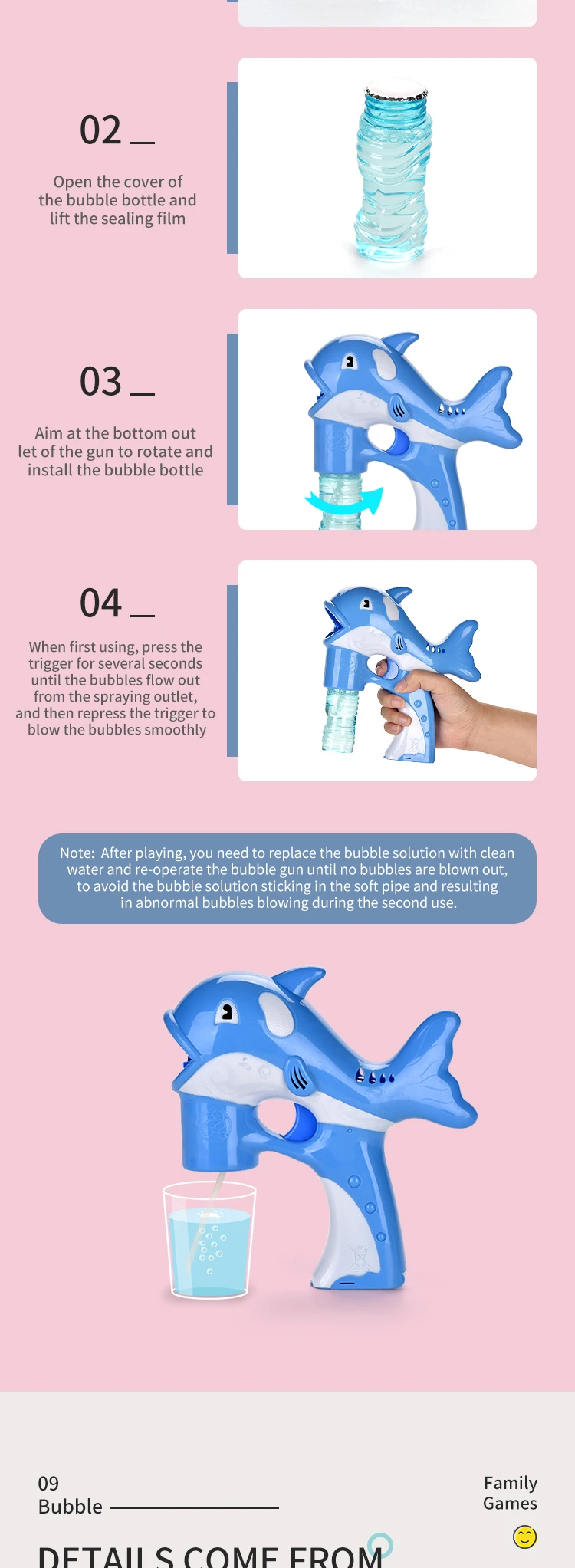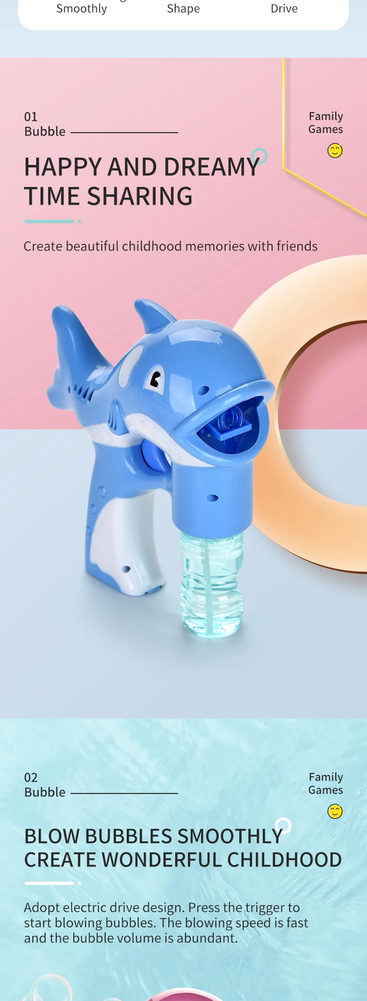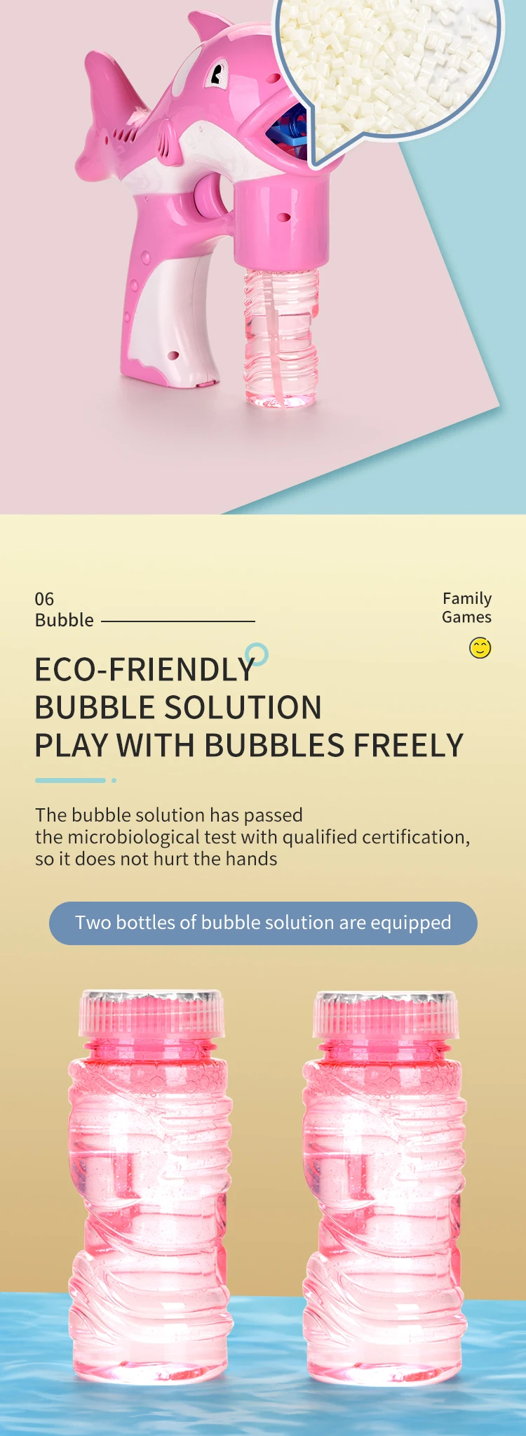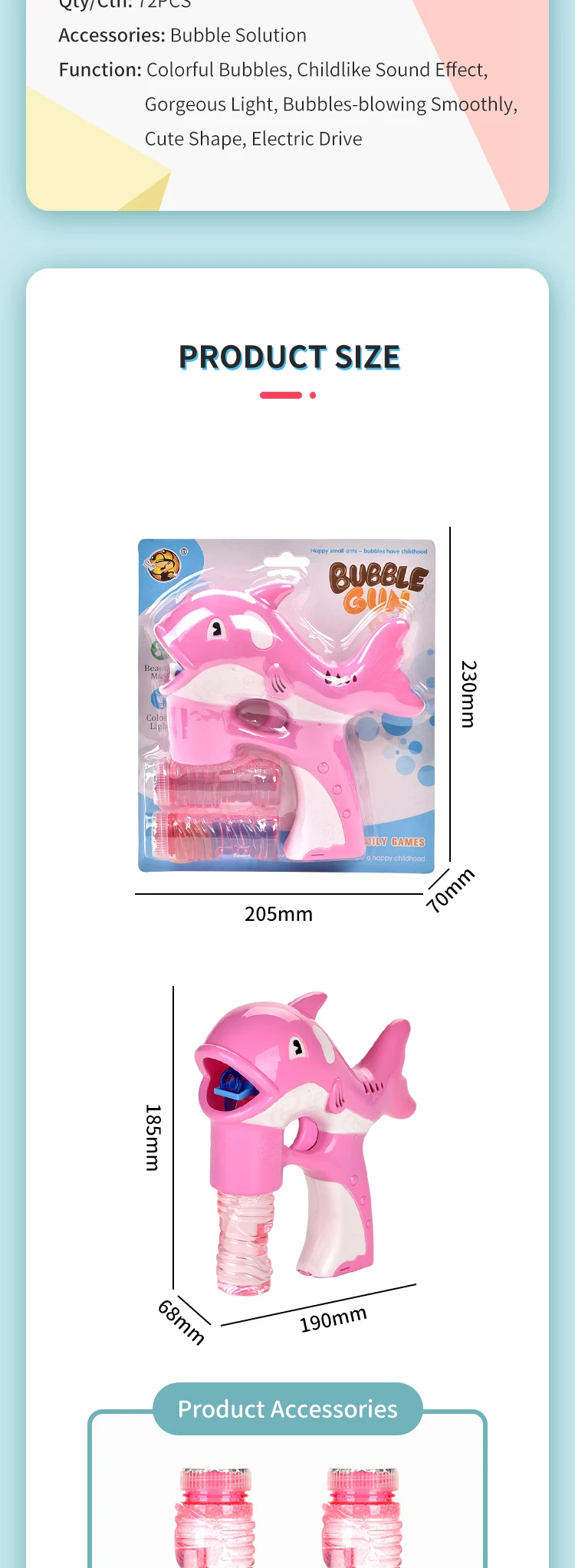 | Item | Solid Color Dolphin Bubble Gun With Light And Music |