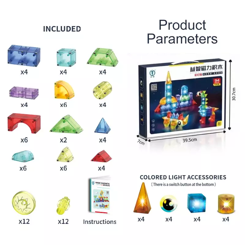 | Product Name | Wholesale Magnetic Building Blocks Toy Set Light Edition 94 PCS for Kids |