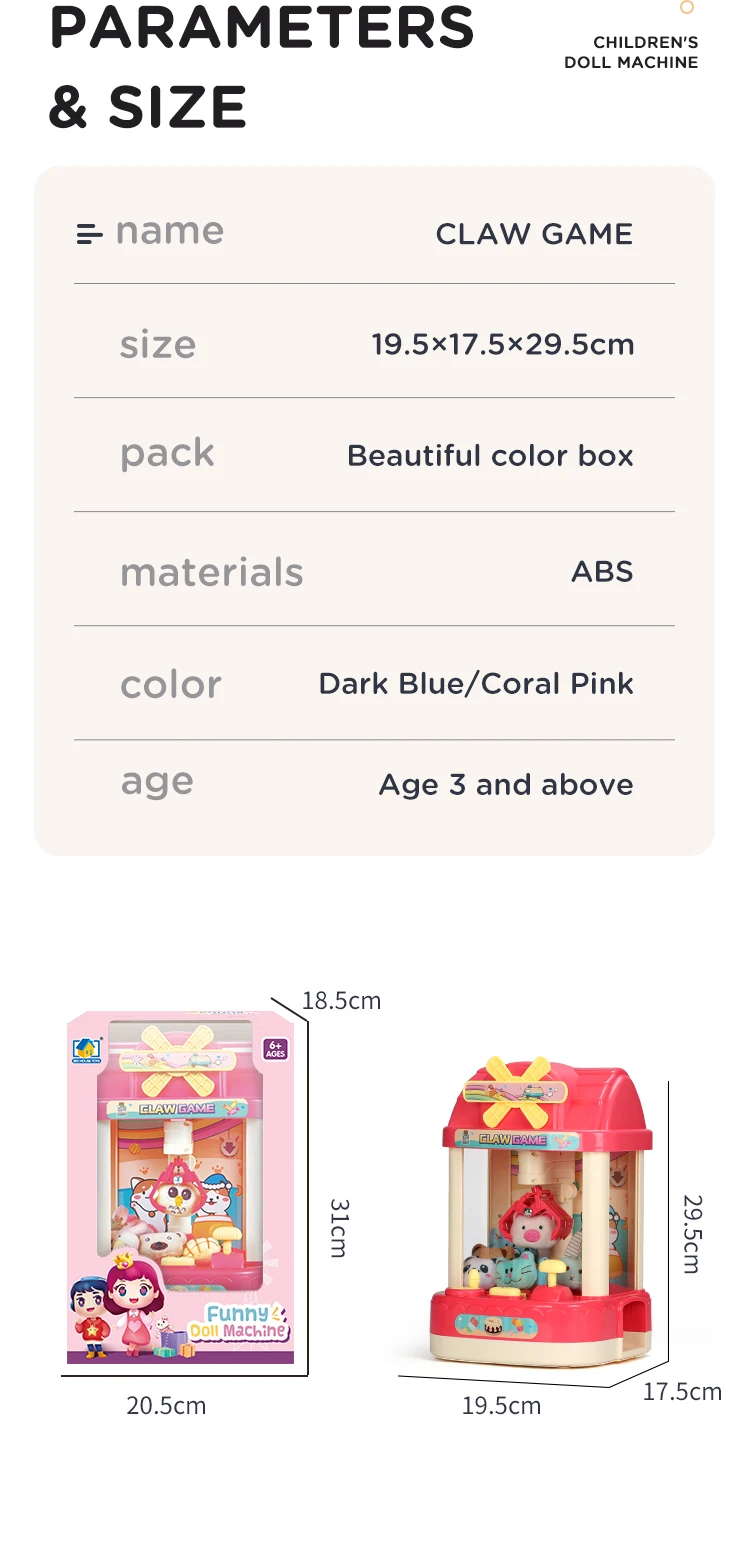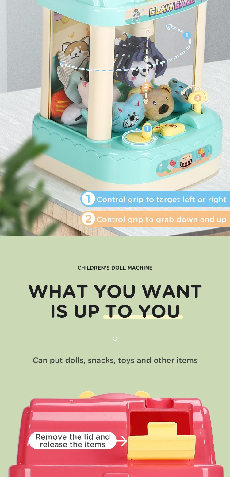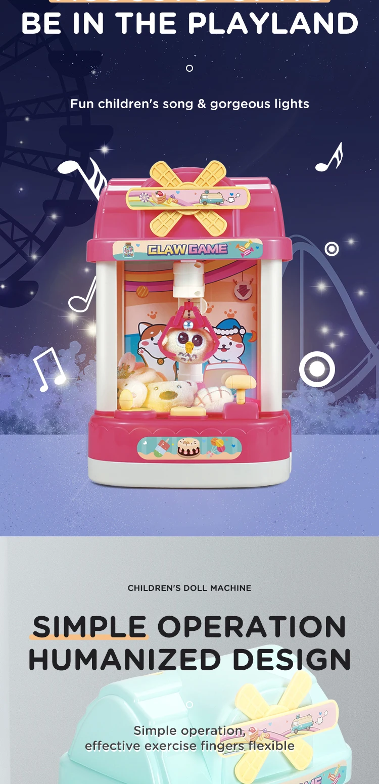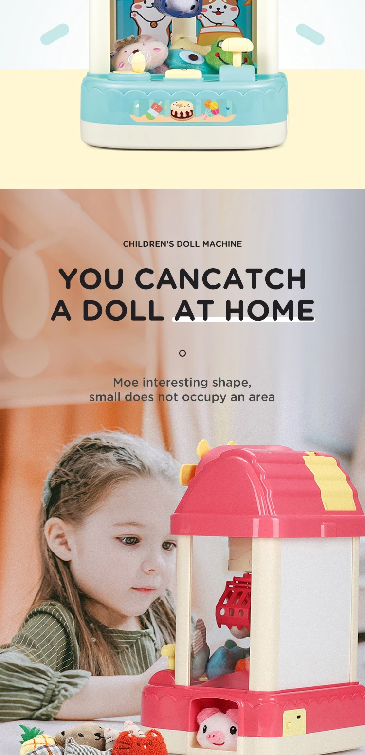 Description Wholesale Plastic Mini Electric Plush Doll Candy Catcher Simulator Toy Crane Game Claw Machine for Children with Music Light