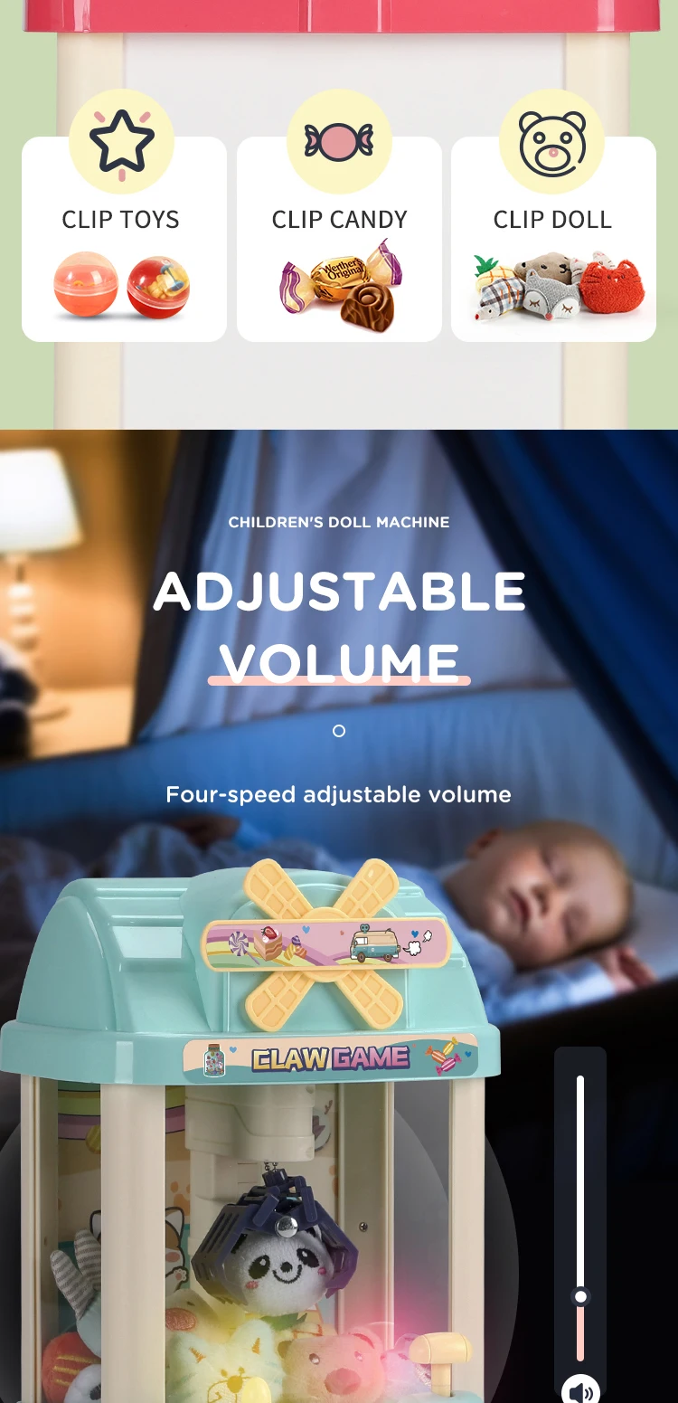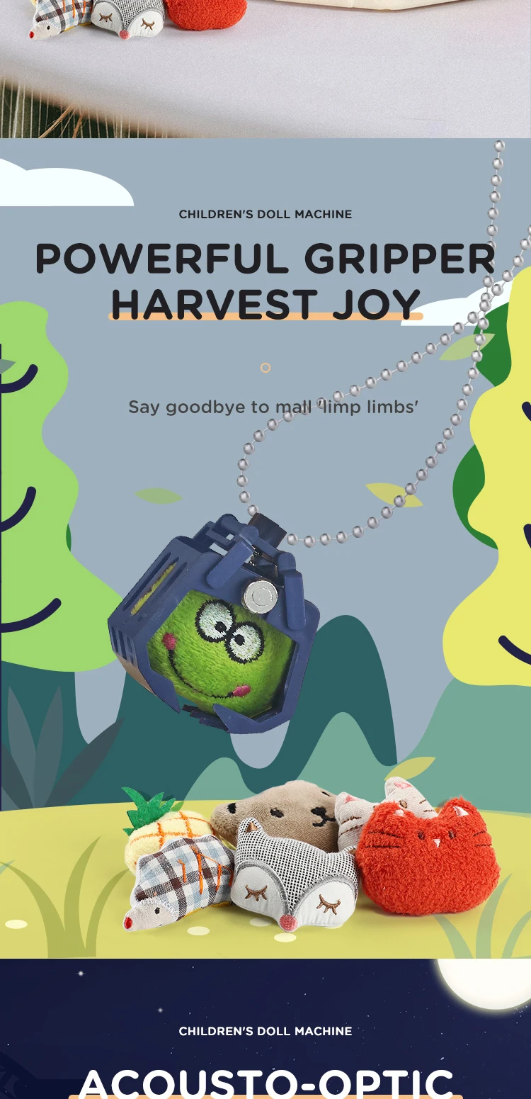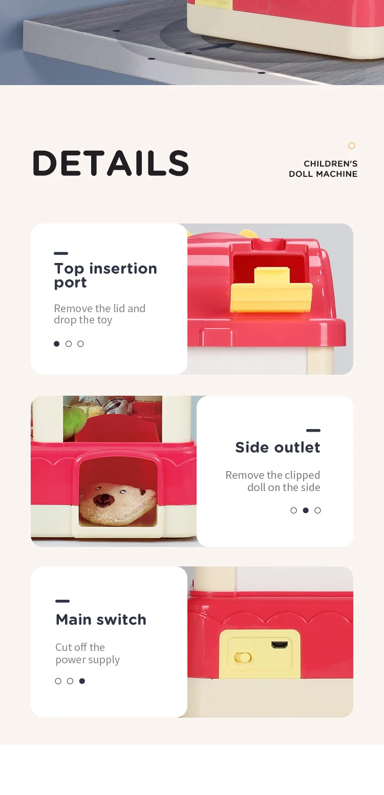 Detail of?Wholesale Plastic Mini Electric Plush Doll Candy Catcher Simulator Toy Crane Game Claw Machine for Children with Music Light